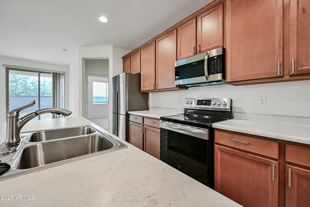 This beautiful home was built in 2021! This 3 bedroom,2 bath is sparkling clean and waiting for you! The open floor plan is perfect for entertaining. This community provides the convenience of being near shopping,the Surprise Baseball Stadium or enjoying the outdoors at local regional parks. Tour this home now,it won't disappoint! Refrigerator has been installed since recent photos. 1 pet will be considered.