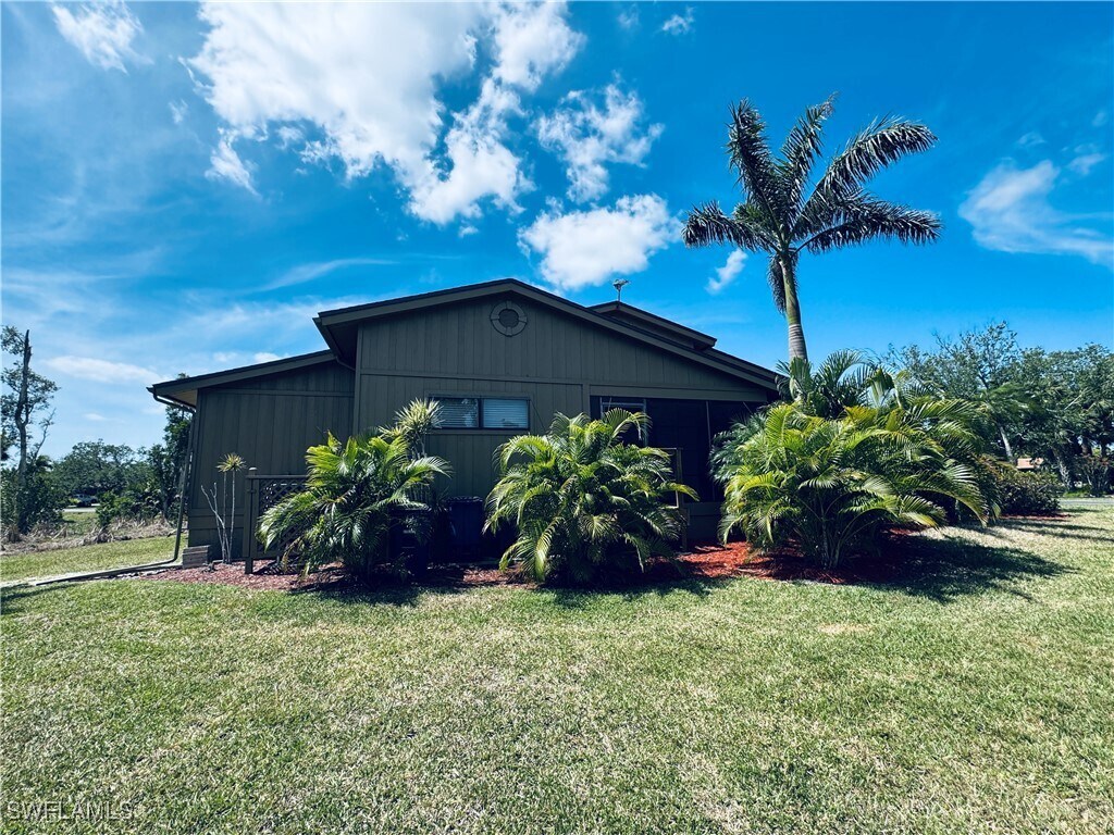 This spacious and beautifully updated 3 bedroom,2 bathroom villa with a 2-car garage is available for rent in a desirable 55+ community in Fort Myers. The home features an open layout with vaulted ceilings,updated lighting,and wood-look flooring throughout. The kitchen is equipped with a sleek stainless steel appliance package,light wood cabinetry,a double basin sink,and modern countertops,all designed to complement the bright and airy feel of the home. Both bathrooms are fully updated with contemporary tile finishes and stylish vanities—one with a walk-in shower and the other with a corner glass shower and vessel sink. The bedrooms are generously sized and include ceiling fans and ample closet space,including a walk-in closet in the primary suite. Enjoy the flexibility of indoor-outdoor living with a private,enclosed lanai featuring vinyl windows and a ceiling fan,overlooking a landscaped green space with mature palms. The garage includes built-in cabinetry and a laundry area,providing plenty of storage and utility. This villa is part of a vibrant 55+ community offering outstanding amenities including a large swimming pool,heated spa,tennis and pickleball courts,shuffleboard,a fitness center,and scenic lakeside walking paths. The recreation center serves as a welcoming hub for community gatherings and social activities.