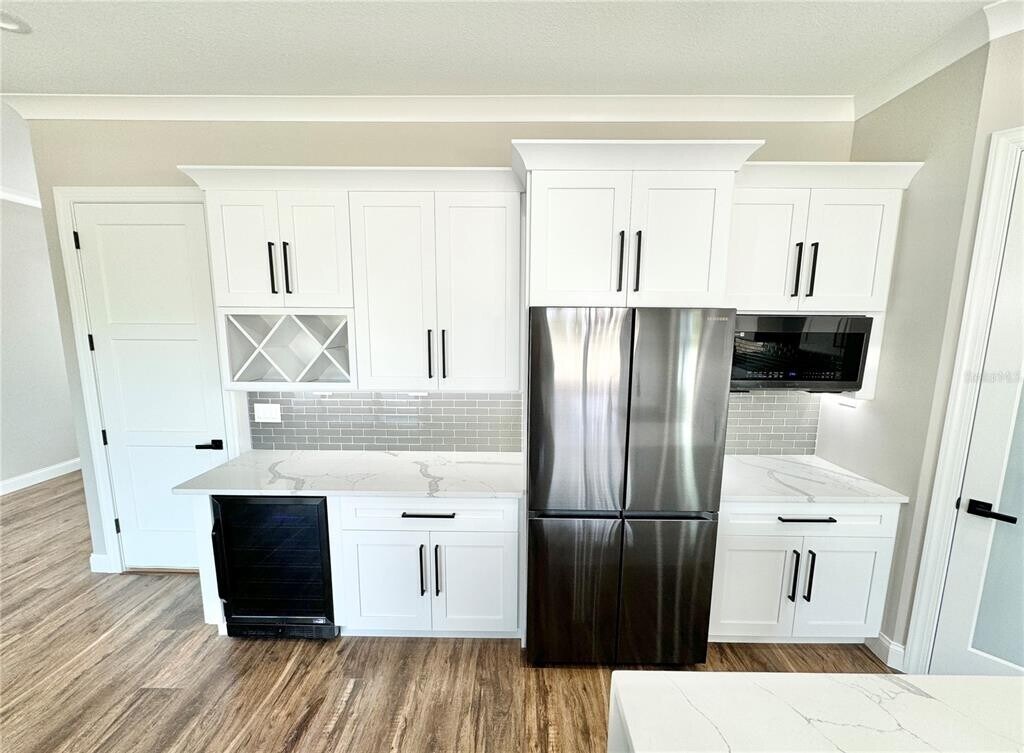 Beautiful,newer home available for long term lease,unfurnished. This home is located in an award-winning golf course community & located right on the golf course (#17 Green) with beautiful views! This home is 4 Bedrooms/2 Bath. It has a ton of upgrades! The gourmet kitchen includes a large island with an infinity-edge quartz countertop,white 42" upper cabinets,glass tile backsplash,a built-in beverage fridge,high-end black stainless Samsung appliances,& a large farm sink. The primary bedroom and bathroom oasis features sliding barn doors,a large walk-in closet with beautiful built-ins,zero entry enclosed shower and custom accents. Other upgrades include luxury vinyl floors throughout (no carpet),cove crown molding,10 ft. ceilings,tropical landscaping and epoxy garage floors. This home is available for 12-month lease term,unfurnished (washer & dryer will be provided for tenants.) MLS# O6376182
