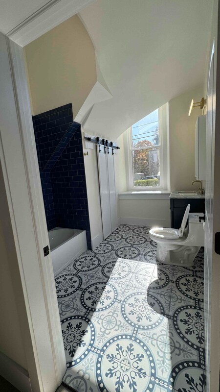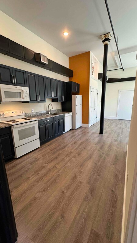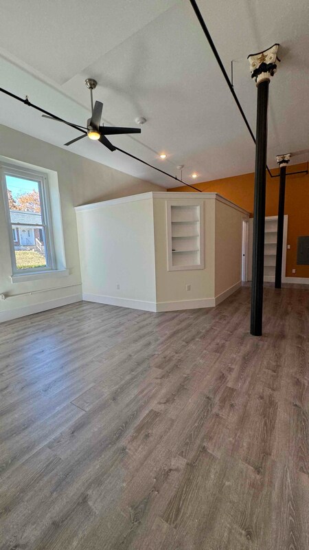 Property Id: 1657267 This is one of our flagship units in a beautifully repurposed church. Walk into a “great” room with lots of natural light and oversized coat closet. There is a beautifully finished and extremely large, tiled bathroom with blue and white Spanish floor tiling and a deep blue wall tile. The bathroom has a large portrait window which provides for plenty of natural light. This apartment has a European style galley kitchen with full sized appliances including a washer/dryer. Built in book shelves and photo shelves allow for additional storage. Off of the kitchen is a large bedroom space with a double hung closet. The bedroom will comfortably accommodate a king size bed. A tuscan orange accent wall nicely rounds out this unit. Central Heaal Heating and Cooling is via a highly efficient heat pump system. Water, sewer, trash, maintenance , landscaping and snow removal are included. High speed and secure wifi is available at a cost of $50 a month. Tenant responsible for electricity.