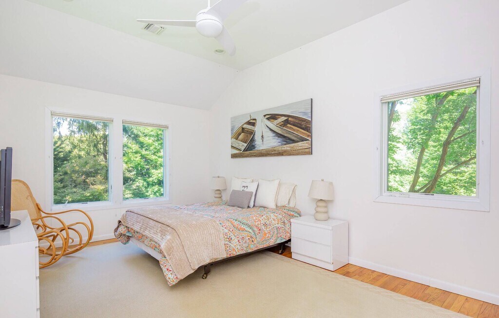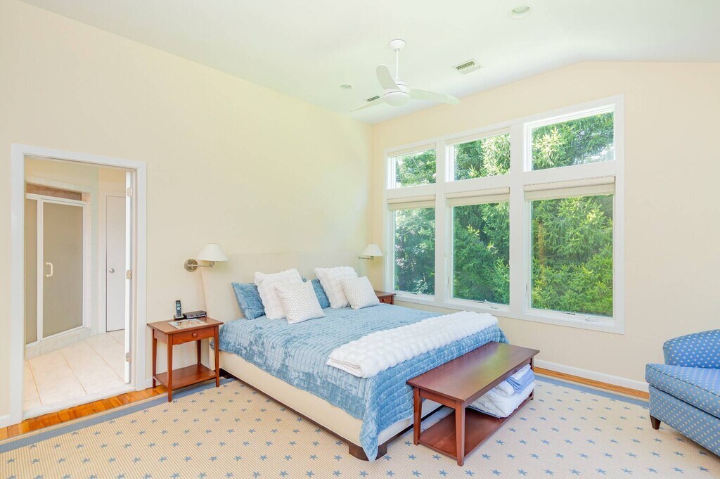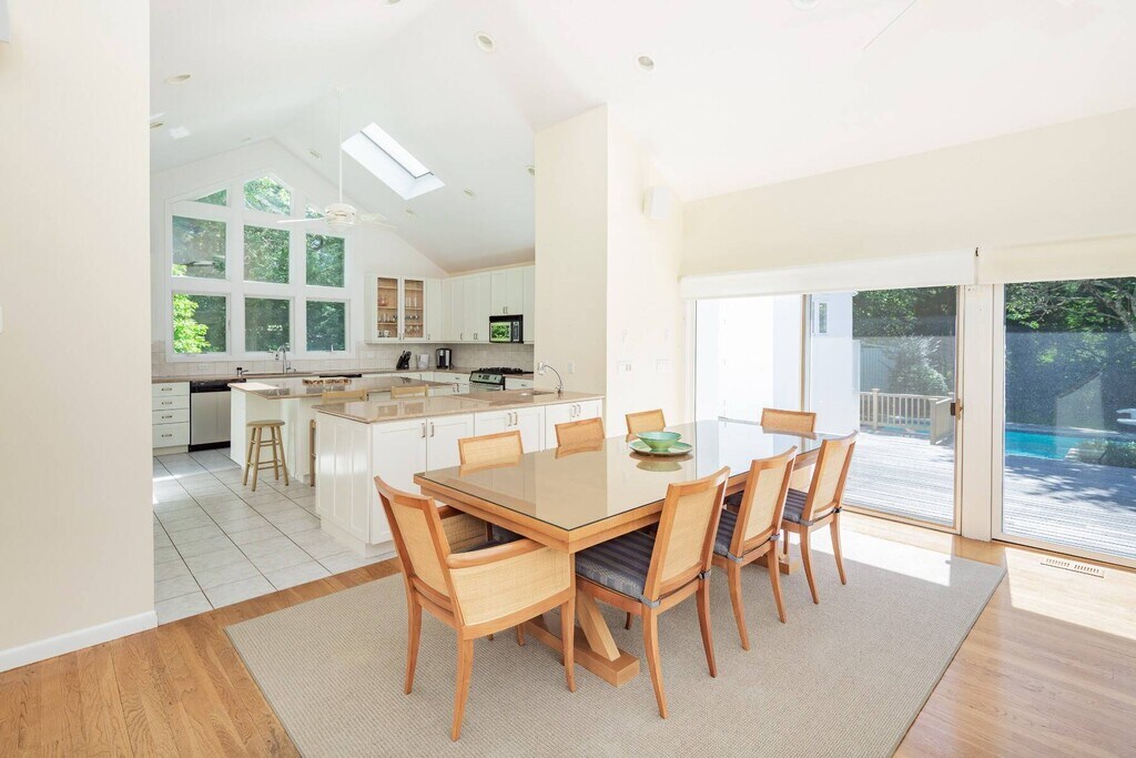 Escape to this serene and stylish East Hampton Village home-available this October during the most beautiful fall weather, or, for July or August during next summer's Hamptons season. Ideally located south of the highway and set on a private acre beside a scenic tree farm, this stunning seven-bedroom, seven-and-a-half-bath contemporary offers over 5,000 square feet of luxurious living space. Thoughtfully designed for relaxation and entertaining, the home features a sun-drenched great room with vaulted ceilings, a wood burning fireplace, and a seamless flow into the chef's kitchen with a large center island and counter seating. Floor-to-ceiling glass doors open to a covered outdoor dining area, a sprawling sundeck, and a 20' x 40' heated Gunite pool with salt water filtration system, complete with chaises longues and plush cabana chairs-your own private oasis. The primary suite is accessed via a private stairway and includes a sitting room with office area, a walk-in closet, and a spa-like bathroom with soaking tub and separate shower. Upstairs also includes two additional light-filled guest bedrooms with a shared bath. The downstairs offers four beautifully appointed guest rooms, each with glass doors leading to the expansive rear deck and lush, fenced lawn-perfect for guests seeking privacy. Additional highlights include a fully fenced, landscaped yard for maximum privacy, outdoor shower, ping pong table, separate laundry in the pool cabana for beach towels, one-car garage, all in close proximity to world-class beaches, shopping, dining, cultural attractions, and transportation. This home delivers the best of Hamptons living-modern comfort, timeless style, and an unbeatable location. [[Rental Registration # tbd]] EH RR #: tbd Rental Terms: Two Weeks: $10,000 August - Labor Day: $95,000 July: $85,000 October: $15,000