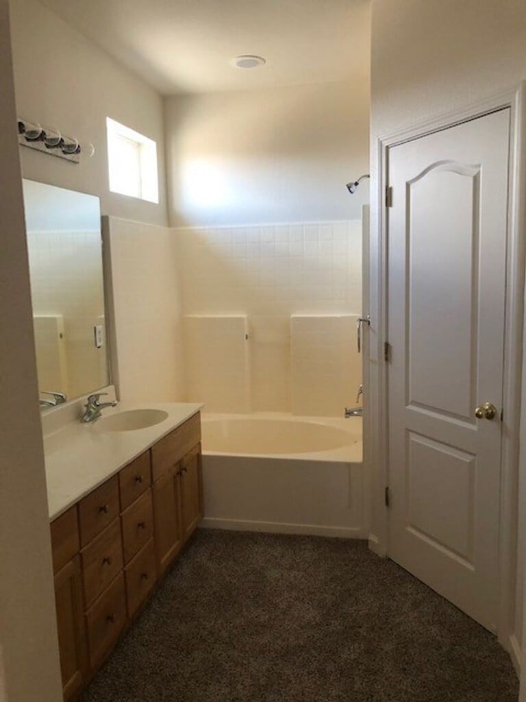 Nice floor plan with 3 bedrooms 2 baths and 2 car garage. Gas range tile counters and in master bedroom boasting a nice master bath with soaking tub shower combo. No fridge. Has gas dryer hook up. And Electric washer hook up. None in house bring your own. You pay all utilities. One year lease. Call for appointment. Application fee applies. No pets of any kind