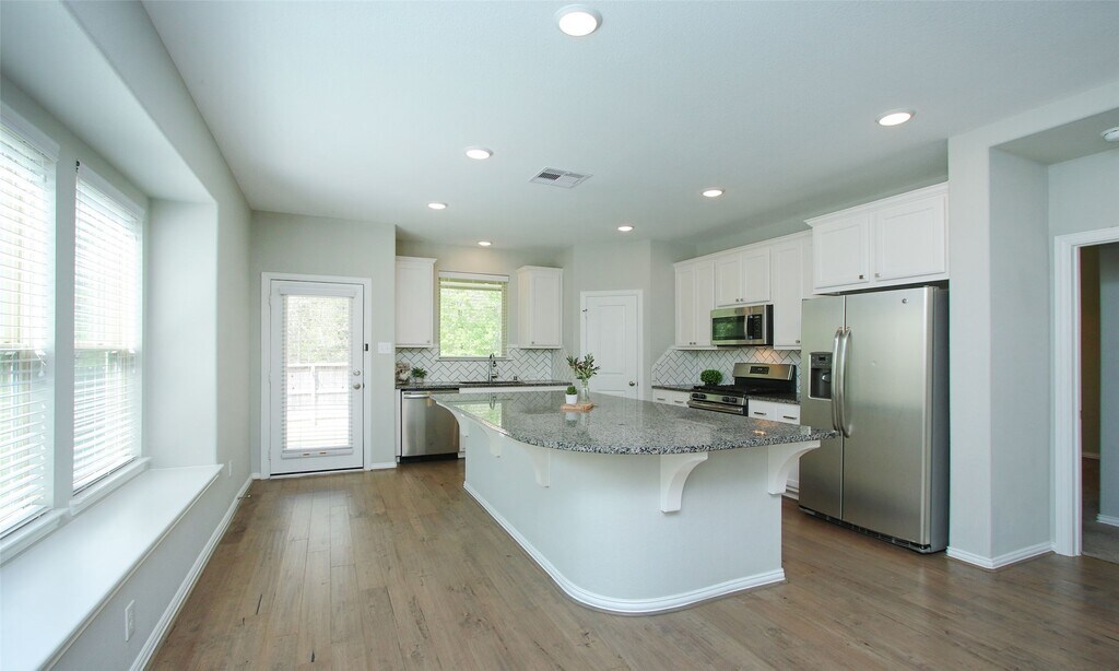 Beautiful Rental home in the heart of Woodforest. This 4 bedroom 2.5 bath home features an open concept floorplan,neutral white grey tones throughout,wood floors in the main living areas,a beautiful white kitchen with an upgraded,oversized island,an office,an oversized game room on the second floor. Within walking distance from the pool and the backyard is private with a stunning wooded view and no back neighbors. The Woodforest community has a resort style pool,lap pool,splash pad,many parks through out the community,walking and nature trails,and a variety of neighborhood activities. Great opportunity to lease this beautiful property in an award winning community. MLS ID 80896982