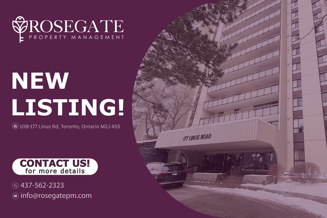 All-Inclusive 2-Bedroom Condo with Parking, Internet & Cable in Toronto Welcome to Unit 109 at 177 Linus Rd, Toronto — a well-maintained 2-bedroom, 1-bathroom condo unit offering approximately 875 sq. ft. of comfortable living space with an exceptional all-inclusive setup. All utilities are included, along with free cable and internet hookup, making this home an excellent choice for tenants seeking a hassle-free, professionally managed Ontario rental property.The condo features a functional layout with two well-sized bedrooms and a bright living area designed for everyday comfort. A front porch adds a welcoming outdoor space, perfect for enjoying fresh air or relaxing after a long day.Additional convenience includes one dedicated parking space, ensuring easy commuting and day-to-day accessibility. The thoughtful design balances privacy, comfort, and practicality within a well-managed condo community.Professionally managed by Rosegate Property Management, a trusted Ontario rental property management company, this Toronto condo for rent is conveniently located near transit, shopping, parks, and everyday amenities. A rare all-inclusive condo opportunity — schedule your viewing today and secure this exceptional rental.