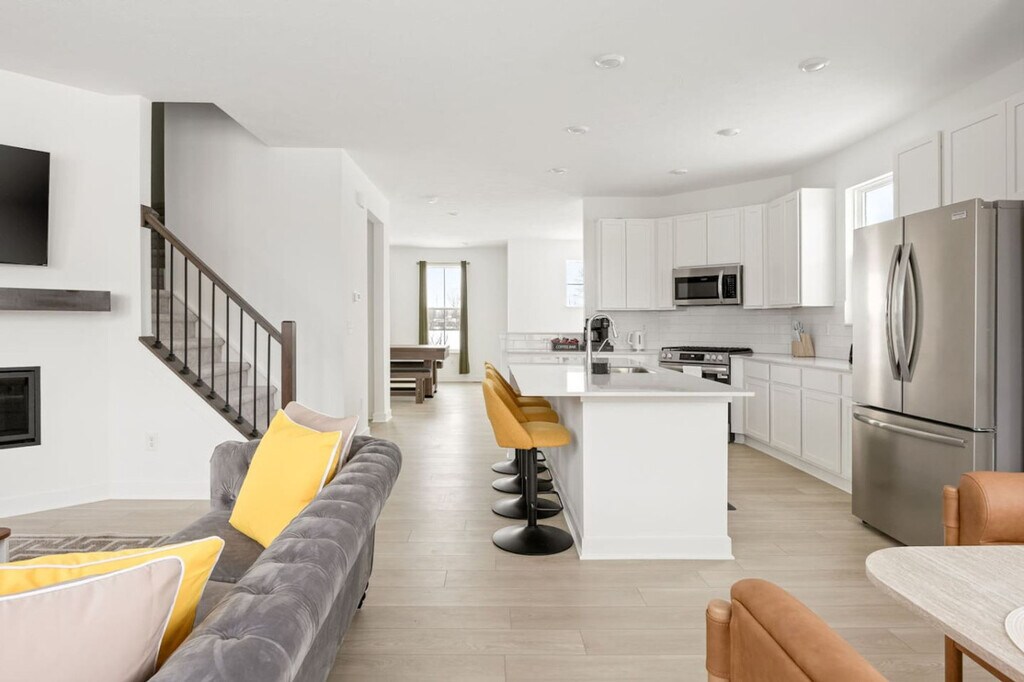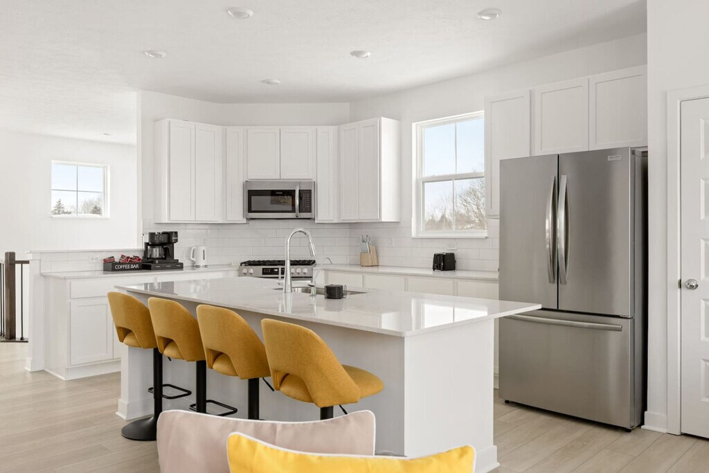 The advertised rate of $3,697/month is the lowest available price, based on a 1 month(s) stay with a move-in date of September 8, 2026. Rates vary depending on the duration of stay, season, and other parameters. For exact pricing and additional pricing components, please visit our website and enter your desired move-in and move-out dates. The rate is applicable when billed upfront; it can be higher if billed in multiple payments. Feel at home in this brand-new, modern, luxury home in Noblesville, Indiana. Located in a newly developed community, this home offers 3 private bedrooms and 4 baths, with approximately 2,200+ sq ft of living space. This thoughtfully designed home features high-end finishes, an open-concept layout, and multiple living areas. The modern kitchen is equipped with stainless steel appliances and ample counter space. Enjoy the balcony/patio space to unwind after a long day. Located in a safe and quiet community in Noblesville, this home offers easy access to everything Hamilton County has to offer. It's minutes from Downtown Noblesville, close to Hamilton Town Center shopping and dining, near top-rated schools, and an easy drive to Indianapolis, Fishers, Carmel, and Westfield. Convenient access to parks, trails, and entertainment is also provided. A car is the best way to explore Noblesville and the surrounding areas. Guests will enjoy free driveway parking with easy access to major roads, shopping, dining, and downtown Noblesville. Uber and Lyft are available for short trips, and walking paths are great for neighborhood strolls. Absolutely no smoking is allowed, and there's a $100 penalty fee for removing smoke detectors. No weapons, firearms, drugs, or illegal sexual activity of any sort are allowed; violators will be reported to the police, and the contract will be terminated immediately. There is a zero-tolerance policy for parties, and following multiple warnings, local law enforcement will be utilized to ensure compliance. Should removal be required, it will be done at the guest's expense. Unapproved late checkout will result in a $50 charge for every hour after the scheduled checkout time. Smoking inside or outside on the patio/balcony, parking lot, or within 50ft of the property is strictly prohibited, as this is a smoke-free community; any smell noticed by cleaners in the house, and/or any physical evidence of smoking any substance in the home will result in a fine of $300.00 to cover the cost of deep cleaning and ozone treatment. Parties and events are strictly prohibited; any evidence of a party or event, including camera footage, excessive garbage, or other evidence will result in a fine of $500.00, legal action, and possible eviction without reimbursement, plus the cost of any extra cleaning or damages that result from the event. An unauthorized animal/pet fee is $250.00. Any evidence of willful or negligent loss or damage to the property, furnishings, decoration, landscaping, towels, linens, or other items will be charged at direct replacement cost plus a fine of up to $300.00. Any evidence of a guest breaking posted house rules, including exceeding the occupancy listed by the guest on the reservation, parking restrictions, pool rules, illegal substances, or use of the property can result in a fine of up to $1000.00 and/or eviction from the property. Check-in details will be sent on the day of check-in. Guests staying a minimum of 28 days will be responsible for paying utilities used during their stay. Check-out time is 11 am (unless otherwise approved). Includes a dedicated flex space ideal for remote work or business travel. Walking and biking are great within the community for fresh air and short strolls, but limited for errands or attractions outside the neighborhood. Nearby parks and trails are bike-friendly. [SI]