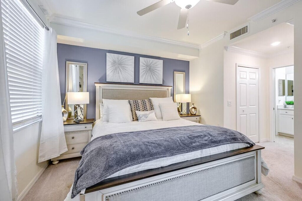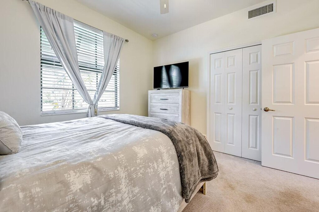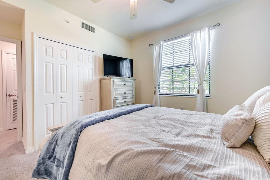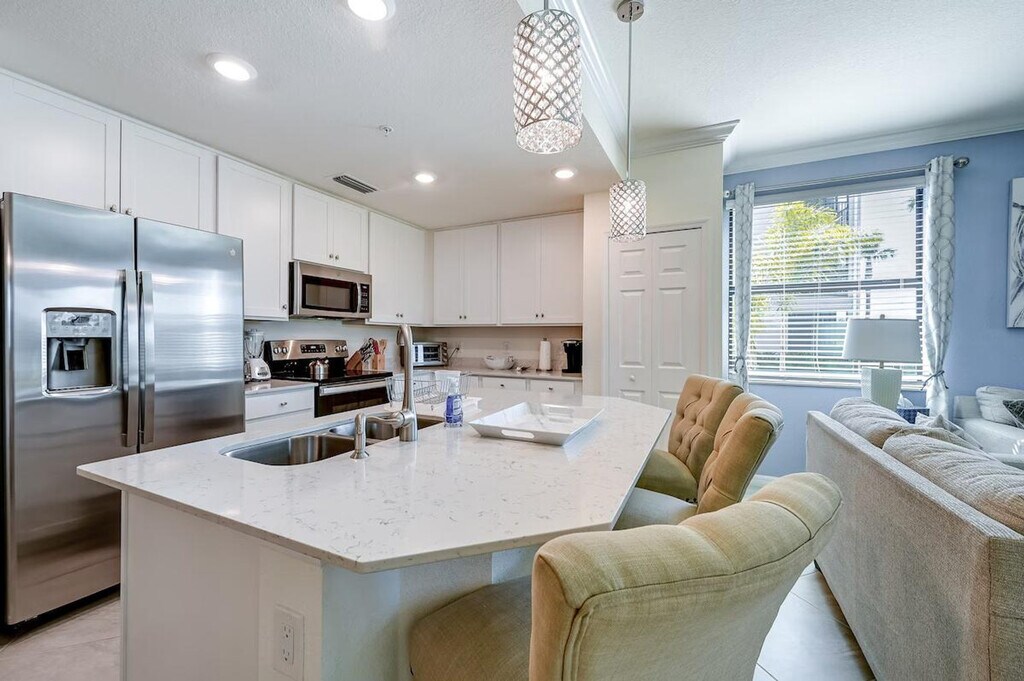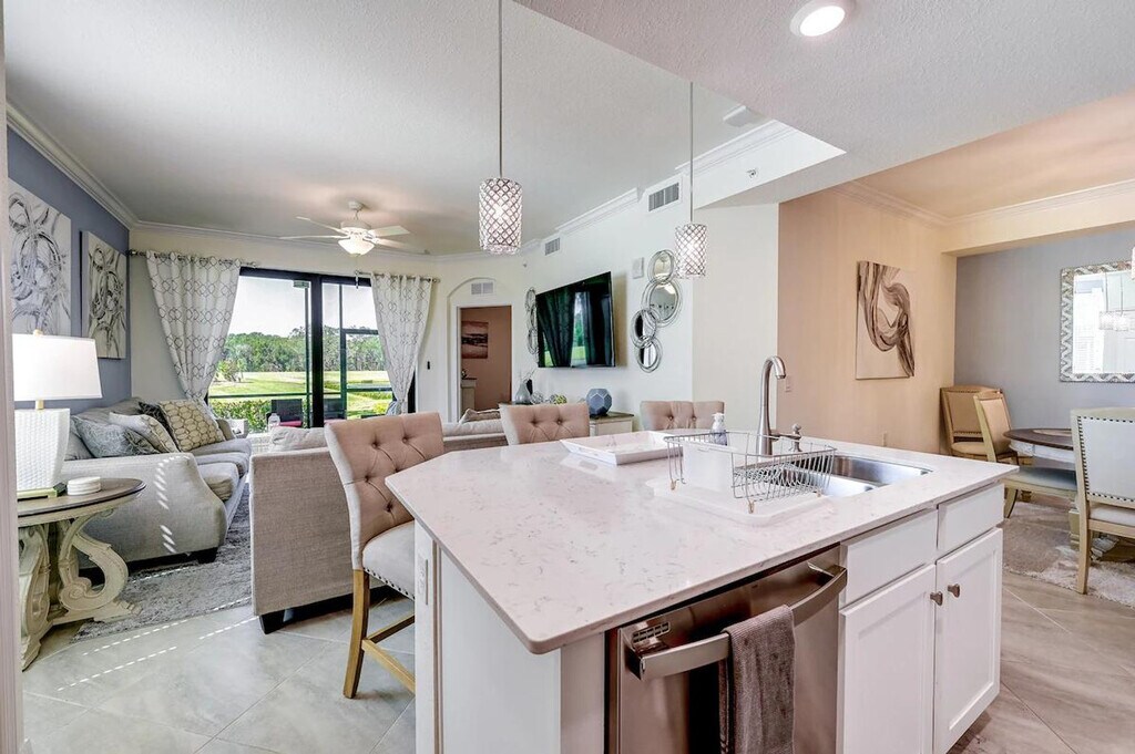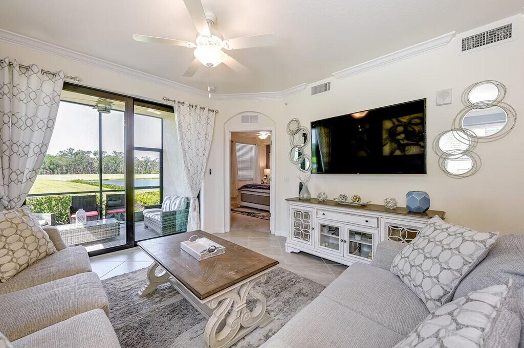 Feel at home in this newly built 3-bedroom condo in Bradenton, FL, about 22 miles from the beach. This first-floor unit features a professionally decorated interior. This condo features 4K smart TVs with cable, a dining table, a breakfast bar, ceiling fans, and a screened porch with lounge seating. The full kitchen is equipped with stainless steel appliances, cooking basics, a knife set, dishware and flatware, a dishwasher, a stove/oven, a refrigerator with a water filter and ice maker, a microwave, a Keurig coffee maker, a blender, a toaster oven, a toaster, and spices. You'll also have access to free Wi-Fi, linens and towels, a washer/dryer, complimentary toiletries, central air conditioning and heating, laundry detergent, an iron and board, clothes hangers, a hair dryer, trash bags, and paper towels. Pet are welcome with a $50 fee. Optional access to the Lakewood National Resort amenities, including a golf membership, outdoor pool, hot tub, bar, fitness center, spa, tennis and pickleball courts, and a clubhouse with dining and a sports bar, is available for an additional $600 fee paid upon arrival. Use of the on-site golf course and the satellite pool down the street is included in the cost of your reservation. Community carport parking for one vehicle and community parking lot (first-come, first-served) are available. Enjoy the community satellite pool or relax on the screened porch overlooking the 15th hole of the Piper Golf Course. Smoking, events, parties, and large gatherings are prohibited. Guests must be at least 25 years old to book. Your safety matters. The property features an exterior Ring doorbell security camera facing the entrance to the unit. The camera is outward facing and does not look into interior spaces. The camera records video and sound when activated by motion. [SI]