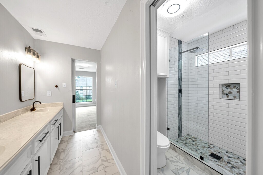 Welcome to this beautifully updated two-story brick home in the sought-after Memorial Northwest community. Offering approximately 4,027 sq ft,this 5-bedroom,3.5-bath home features a functional layout with the primary suite on the first floor. A grand entry welcomes you with soaring ceilings,crown molding,and abundant natural light. The open-concept kitchen showcases quartz countertops,white cabinetry,stainless steel appliances,a large island with breakfast bar,and designer backsplash. Enjoy multiple living spaces including a formal dining room,spacious den,and upstairs game room with fireplace. The primary suite offers a spa-like bath with dual vanities,soaking tub,and separate shower. Step outside to a private backyard with an in-ground pool,spa,covered patio,and fenced yard—perfect for entertaining. MLS# 53569532