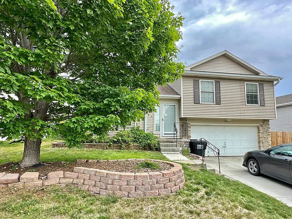 Beautiful Split-Level Home in Hickory Ridge Millard School District Step into this charming split-level home featuring vaulted ceilings and a spacious living room with large windows that fill the space with natural light. The eat-in kitchen boasts a butcher block island and opens onto a deck that leads to a generously sized, privacy-fenced backyard perfect for entertaining or relaxing. Upstairs, you'll find three bedrooms and two bathrooms, including a master en-suite. The lower level offers an additional living room, and the bottom level includes a large laundry area with a versatile space ideal for a home office or workout room. Located in Hickory Ridge Millard School District No Section 8 Humane Society bully breed restrictions apply Apply directly through Red Key Real Estate 1 year