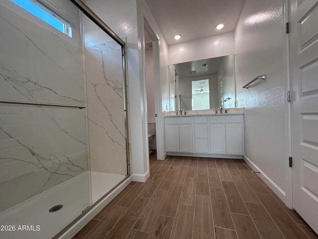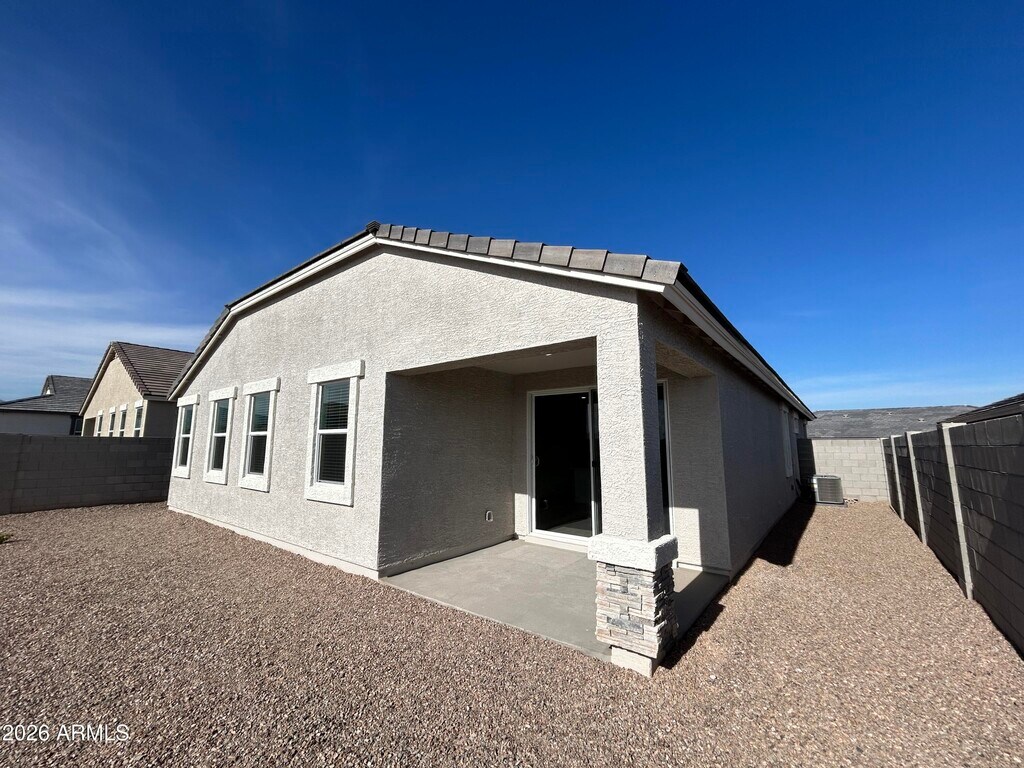 Welcome to this brand new,never-lived-in home located within a desirable gated community. Thoughtfully designed with modern finishes,the home features wood-look ceramic tile flooring throughout the main living areas and comfortable carpet in the bedrooms. The kitchen is a standout with quartz countertops,a classic subway tile backsplash,stainless steel appliances including a convection oven,and a large island that provides ample space for cooking,dining,and entertaining. Natural light fills the home,enhanced by 2-inch wood blinds on every window and ceiling fans in all rooms for year-round comfort. The bathrooms are finished with raised vanities,adding both style and functionality. The primary bedroom offers a private retreat with a spacious walk-in closet and a walk-in shower designed for everyday luxury. Residents enjoy access to outstanding community amenities,including dog parks,pickleball courts,children's playgrounds,and beautifully maintained neighborhood parks,making this home an ideal choice for both relaxation and an active lifestyle.