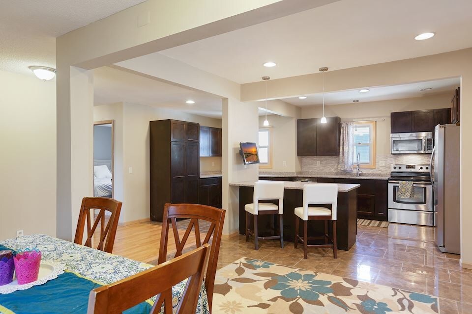 $3,000 - Large 6 Bed / 2.5 Bath house in the heart of Lauderdale. Available September 1st, 2026. Enjoy a spacious and newly remolded kitchen accompanied by stainless steel appliances. Large bedrooms, updated bathrooms and beautiful original hardwood floors throughout. Attached garage with ample space for 2 vehicles and a rocking chair friendly front porch round out the property. Great location just 1 mile from the University of Minnesota St Paul Campus, 2 miles from Dinkytown and 2 blocks from the metro bus line. Please contact if interested. This house won't last long!