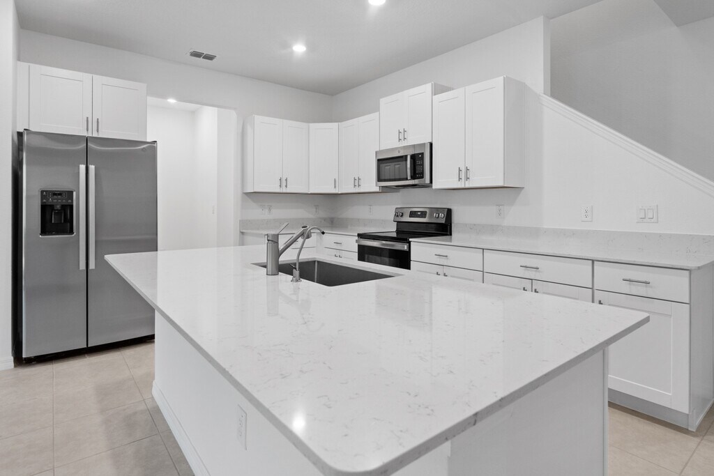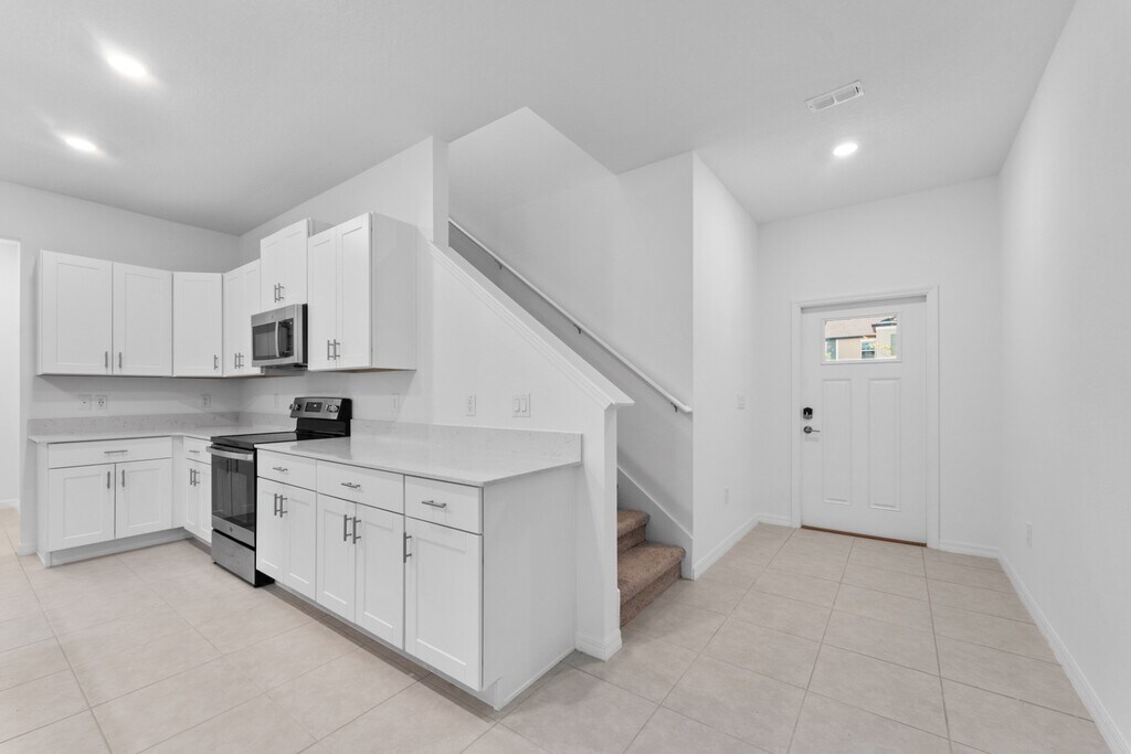 Absolutely stunning 3 BR /2.5 Bath / 2 Car Garage + LOFT townhome in ultra-modern and green-focused New Community of Angeline! ALL the best upgrades and conveniences. This is the LARGE (2319 SF!) floor plan home which includes a large upstairs LOFT/media/office/gym area. Every year home design continues to improve and expand on the features and amenities modern buyers want, and this home epitomizes that progress. Intelligent design features like a large open and bright kitchen designed to entertain w/ a walk-in kitchen pantry, a truly beautiful oversized quartz island/breakfast bar, surrounded by classic solid white cabinetry with premium bright white quartz countertops. Featuring GE® stainless steel appliance package. Everything you could want in a "chefs dream kitchen". Upstairs is the master suite with a bedroom-sized GIANT WALK-IN CLOSET and ensuite bathroom that is AMAZING! With a double vanity/his & her sinks, a garden soaking tub, with separate walk-in shower w/ subway tile, all designed to feel like a spa-like retreat within your own home. Washer and dryer are included, with an upstairs laundry room. Lawn Care & High speed (200/200 Mbps) internet included. The outdoor covered lanai has views of the conservation area. Angeline is a brand new community and a wonderful place to live, with sprawling green spaces spanning 3,600 acres, and a serene freshwater lagoon offering beachfront activities. Outdoor enthusiasts will be thrilled with over 100 miles of trails suitable for walking, jogging, or biking. Great schools including a brand-new ANGELINE STEM SCHOOL OF INNOVATION, plus a brand new gorgeous community pool, clubhouse, and community farm, With easy access to FL-State Road 52, 589, and Interstate 75 making shopping and commuting a breeze. Apply today!