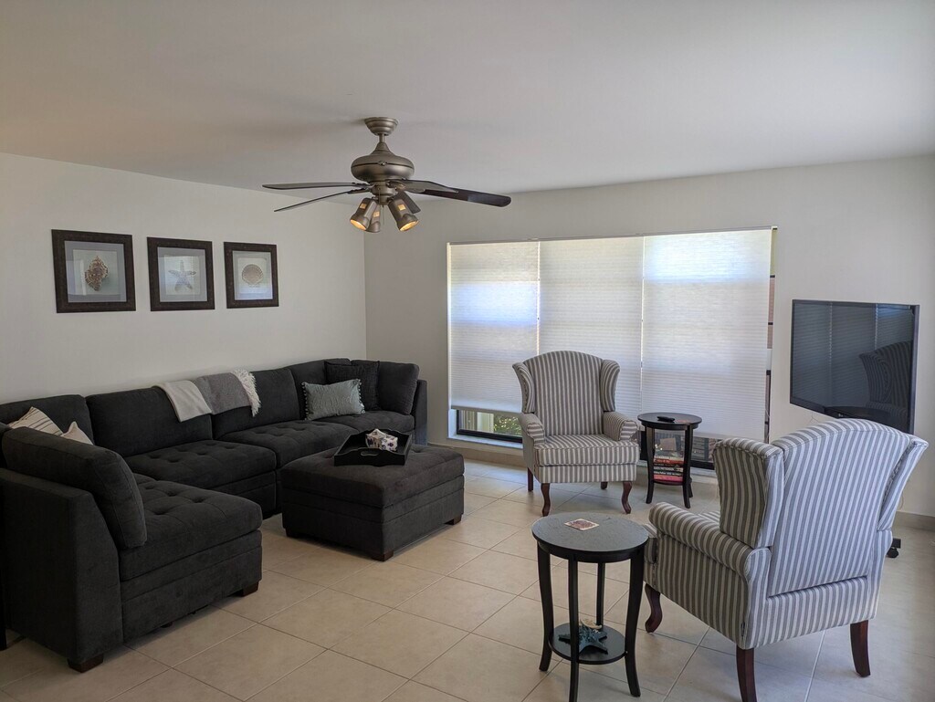 Furnished rental walking distance to the beach! Updated kitchen with white cabinets and granite counters, stainless steel appliances. 1 bedroom and 1 full bath on the 1st floor 2nd bedroom and 2nd full bath on the 2nd floor. Washer and dryer in the unit. Instant hot water heater. Two fenced patios. Community pool. 1 car Carport and a 2nd designated parking space are included. No Pets.