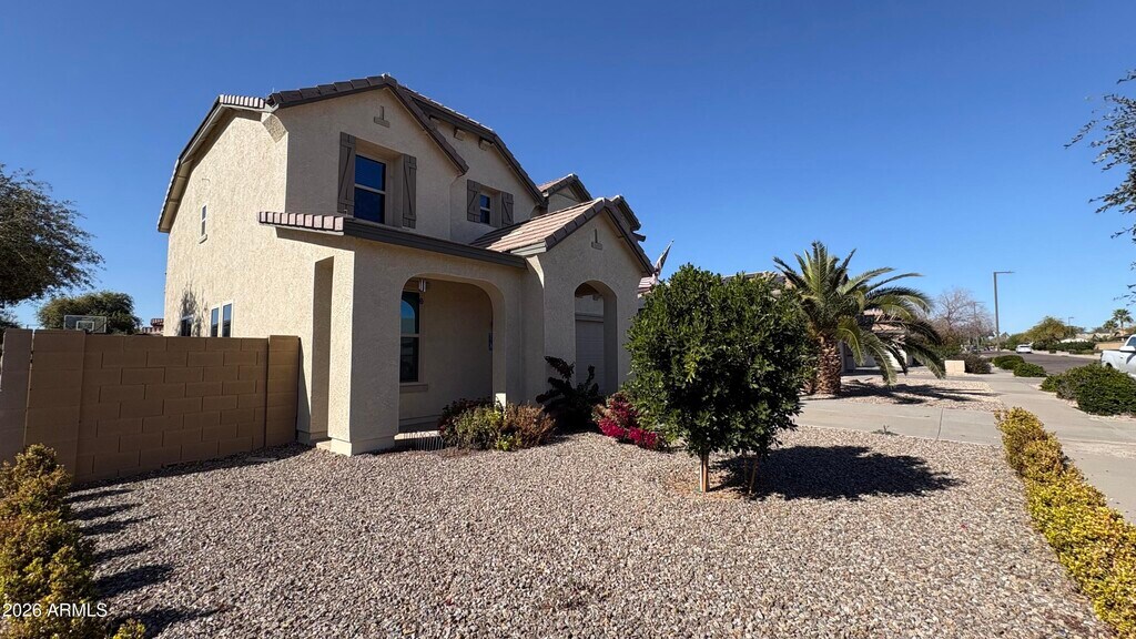 Beautifully updated 5-bedroom,3-bath home with pool in the desirable Bell Pointe community of Surprise. Features include solar,real wood flooring in the living room,tile throughout main living areas,and newer stainless-steel appliances. Spacious primary suite offers a jetted tub with heated/cooled jets,vibration and pressure controls,plus a custom rain shower. Guest bath includes dual sinks. Additional upgrades include water softener,new ceiling fans,and sliding glass door. Bedroom and full bath located downstairs; upstairs features a loft and generously sized bedrooms. Conveniently located near Loop 303,top-rated schools,dining,and the Surprise Recreation Campus.