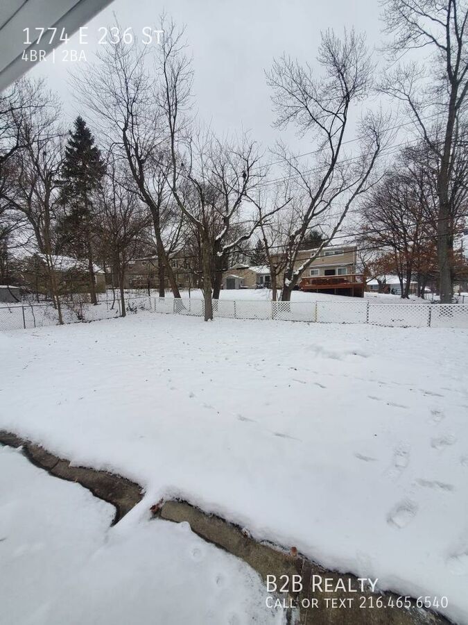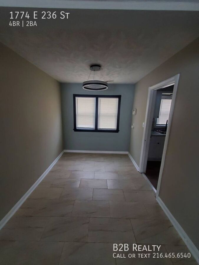 Welcome to your new sanctuary! Situated in a vibrant neighborhood, this charming 4-bedroom property at 1774 E 236 St Euclid, OH 44117 offers the perfect comfort and convenience. Designed for those seeking a peaceful retreat without sacrificing access to the best the city has to offer, this cozy apartment provides an exceptional living experience. Property Type: • Single Family Home Interior Features: • Spacious Living Area: The open-plan living area is designed for relaxation, featuring plush carpeting/flooring and neutral tones that create a warm and inviting atmosphere. • Modern Kitchen: The kitchen is well-appointed with essential cabinetry and workspace, making meal preparation a breeze. Enjoy the convenience of modern fixtures and ample storage space. • Comfortable Bedrooms: The bedrooms offer a peaceful oasis, perfect for unwinding after a busy day. Its tranquil setting ensures a good night's sleep. • Updated Bathrooms: The bathrooms are clean and functional, with modern fixtures that cater to your daily needs. Exterior Features: • Charming Curb Appeal: The property at 1774 E 236 St Euclid, OH 44117 boasts a charming exterior with a well-maintained facade. The inviting front entrance is complemented by a cozy porch, perfect for enjoying a morning coffee or greeting neighbors. • Landscaped Surroundings: The apartment is nestled within a beautifully landscaped area, offering a green and serene environment. The lush greenery around the property adds to the tranquil atmosphere, providing a refreshing retreat from the city's hustle and bustle. • Private Patio/Balcony: Enjoy your own private outdoor space with a small patio or balcony, ideal for relaxing or entertaining guests. This additional area enhances your living space and offers a personal outdoor retreat. • Parking Availability:. This property has an attached garage for parking • Safe and Secure: The property is situated in a safe neighborhood, providing peace of mind for you and your loved ones. The well-lit exterior and secure entryways further enhance the security of your new home. Location Highlights: • Convenient Access: Situated in a desirable neighborhood, this property provides easy access to local shops, dining, and entertainment options. Whether you’re a busy professional or a student, you’ll appreciate the convenience of having amenities close by. • Vibrant Community: The surrounding area is known for its friendly community atmosphere and offers plenty of opportunities to explore and engage with your neighbors. Additional Information: • Screening: We charge a $25 fee per person over the age of 18 for background checks. Our comprehensive screening process includes credit, background, and eviction checks as well as verification of income, job history, and landlord references. We strive to approve tenants who may not initially think they qualify. Resident Benefit Package: Our mandatory Resident Benefit Package is designed to make your life easier, rewarding, and stress-free. Here’s what you get: Pest Share Protection: Covers control for bed bugs, fleas, mites, ticks, & weevils. Credit Building: Boost your credit score with every rent payment—we report it for you! Resident Rewards: Earn cash and discounts worth up to $4,500 annually. No ACH Fees: Enjoy waived $2.49 ACH fees on all online payments. 24/7 Maintenance Line: Round-the-clock access to ensure peace of mind. NSF Fee Waiver: Get one non-sufficient funds (NSF) fee waived per tenancy. Move-in Concierge: One call to set up utilities, cable, and internet. SmartLock Access & FREE Lockbox: Convenient move-in with advanced security. Online Rent Payments & Portal Access: Easy access to your payments and account overview. Vetted Vendor Program: Only insured vendors will service your unit for extra reliability. Security Deposit Waived via Obligo: A flexible, affordable alternative to traditional deposits, offering financial freedom and peace of mind. Take advantage of this comprehensive package for just $49.50/month, designed to enhance your living experience while saving you time and money! • Neighborhood Insight: To get a true sense of the area, we recommend visiting the property at different times of the day. This will give you a realistic feel for the neighborhood’s ambiance and what to expect. • Maintenance: B2B Realty ensures that all properties are safe and well-maintained. While tenants are not permitted to make changes or repairs to the property, our dedicated maintenance team is always available to address any issues. Pet Policy: We welcome pets with an additional fee of $30 per month. Please note that we do not require a pet deposit. Lease Terms • Dogs : Not Allowed • Cats ok Availability: • Section 8 :This property is not available for section 8 Contact Us: Don’t miss this incredible opportunity to avail 11774 E 236 St Euclid, OH 44117 as your new home. Contact B2B Realty today to schedule a viewing and discover what makes this property so special. Our friendly team is ready to assist you with any questions you may have and help you through the application process. B2B Realty Phone: Call or text to schedule a tour today!