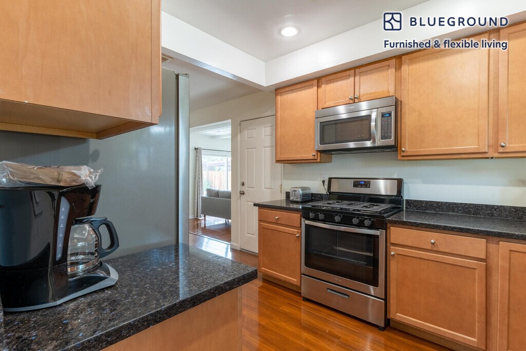 Show up and start living from day one in San Jose with this stylish four bedroom Blueground house. You’ll love coming home to this thoughtfully furnished, beautifully designed, and fully equipped Knights Bridge home. (ID #SFO1641) The advertised rate of $4,200/month is the lowest available price, based on a 11 month(s) and 29 day(s) stay with a move-in date of April 16, 2026. Rates vary depending on the duration of stay, season, and other parameters. For exact pricing and additional pricing components, please visit our website and enter your desired move-in and move-out dates. The rate is applicable when billed upfront; it can be higher if billed in multiple payments. Brokers are welcome to reach out. Were you looking for an unfurnished lease? Try Blueground instead and upgrade from unfurnished to furnished living: - Furnished at rates comparable to unfurnished - No setup or furniture costs - save thousands - Move-in ready - save time, just bring your suitcase Designed with you in mind Gorgeous furniture, fully equipped kitchen, smart TV, and a premium wireless speaker are just a few of the amenities you’ll find inside this four bedroom house. Ideally located in San Jose, you’ll find a lot to love outside as well. When you’re ready to relax, you’ll be happy to discover every Blueground bedroom comes with superior quality mattresses, luxury linens, and cozy towels. We handle everything so you can simply show up and start living. This house also offers in-house laundry. Sleeping arrangements King Bed, 70.8in/180cm Queen Bed, 63in/160cm Queen Bed, 63in/160cm Queen Bed, 63in/160cm Amenities Building amenities unique to this four bedroom house include an on-site: - Dryer - Washing machine - Parking - Pets allowed Arrival and ongoing support The entire house is yours to enjoy! Throughout your stay, you’ll have access to our Client Experience team through the Blueground App. You can schedule additional cleanings, submit maintenance requests, and view our neighborhood recommendations with just a few taps. We’ll share all details upon confirmation of your stay. Other things to note This Blueground house has flexible lease options, allowing you to book it for one month, a year, or more. Pets are welcome, though weight limits and breed restrictions apply and may incur fees. Parking is offered based on availability and is subject to a fee. Please keep in mind that this is a walk up building. We take great pride in ensuring every photo displayed is shot in our own units with our actual furnishings. That said, we regularly refresh our decor and furniture arrangement, which may differ from what’s pictured. [SI]