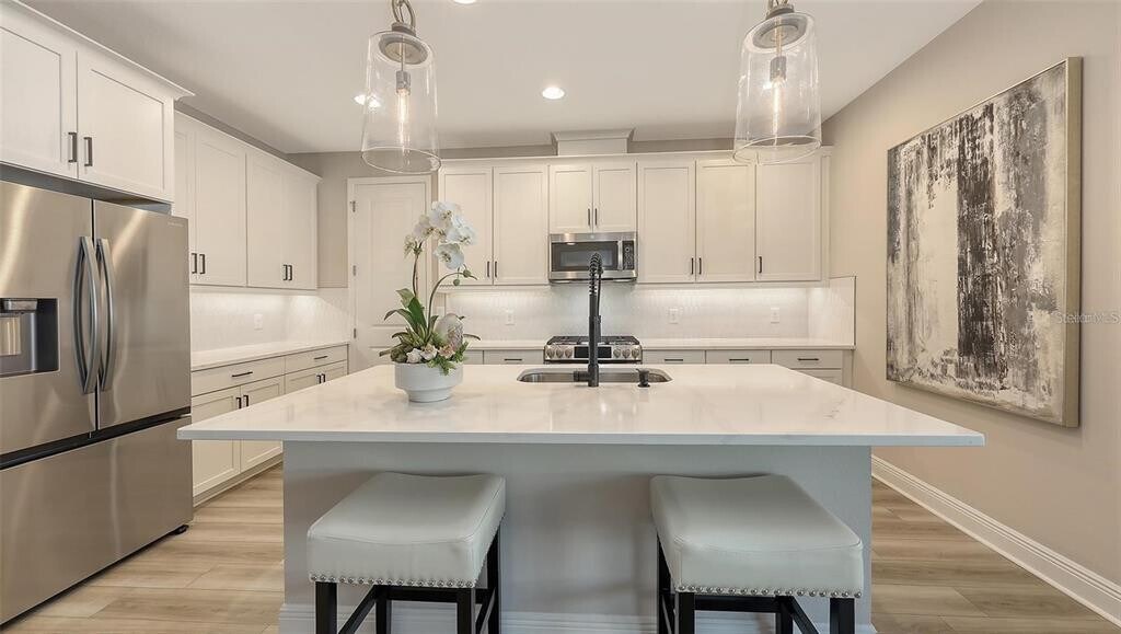 Welcome to the gated community of “Sweetwater at Lakewood Ranch.” This beautiful,pristine “UNFURNISHED” 3-bedroom,2 bath,salt-water pool home offers sophistication and comfort,and tranquil pond views from your screened-in lanai. Available for Annual rental as of 4/1/2026. Upon entering through the glass front door,you will find a light and bright interior with luxury vinyl plank flooring,tray ceilings,an open-concept great room which flows through to the outdoors through the large sliders,where you will find a screened,covered lanai,a cozy seating area with fireplace,built-in TV wall,and a sparkling saltwater pool. The beautiful gourmet kitchen boasts quartz countertops,center cooking island,under-cabinet lighting,designer pendant lights,stainless appliances,gas range,and a spacious walk-in pantry. There are plantation shutters on all windows throughout the home,custom chandeliers,and 72” ceiling fans. The primary suite has a large walk-in closet with custom built John Louis closet system,an ensuite bathroom with dual sinks and large walk-in shower. Two guest bedrooms with built-in closets,and a guest bathroom with single sink and tub/shower combo. Sweetwater community offers residents access to the resort-style amenities,which include pickleball courts,state-of-the-art fitness center,sports courts,a playground,large,heated community pool,clubhouse,and walking trails. Rent includes Pool maintenance and yard care. **(FURNITURE SHOWN IS FOR STAGING PURPOSES ONLY). ** MLS# A4674027