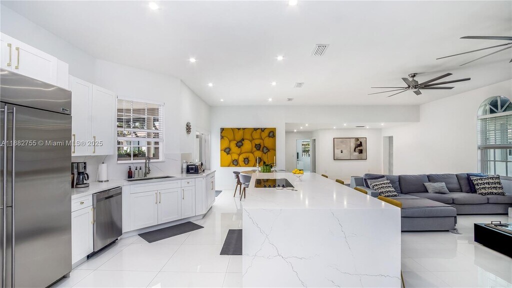 Elegant & Updated 6-Bedroom Residence in Prime Location. Discover this beautifully updated 6-bedroom, 4.5-bath home, ideally situated on a peaceful cul-de-sac just a short stroll from Palmer Trinity School. With NO HOA, this property offers a fenced 21,883 sqft patio. Inside, you’ll find a spacious primary suite complete with a custom walk-in closet, a spa-inspired bathroom, and serene pool views. The gourmet kitchen showcases sleek new cabinetry, striking quartz waterfall countertops, and premium stainless steel appliances. Designed for both relaxation and entertaining, the home features a screened-in pool and patio area, complemented by included pool and lawn maintenance for effortless living. A truly exceptional home — and very easy to show!