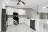 MOVE IN RADY!! Completely Renovated – Like New! - Seller Financing Available - Lowest HOA in the Community This beautifully updated 2 bed / 2 bath home in Island Park is move-in ready with upgrades throughout — featuring a NEW ROOF (2023),brand-new A/C,water heater,quartz countertops,tile flooring,and sloped ceilings. The kitchen includes white shaker cabinets and stainless-steel appliances,while both bedrooms offer sliders leading to a screened-in lanai and private patio with fresh landscaping. Located in the non-55+ section,this community offers one of the lowest HOA fees in the area,which also includes flood insurance. Amenities feature pools,tennis courts,lakes,shuffleboard,and a clubhouse — all just minutes from Naples,Fort Myers,RSW Airport,shopping,dining,and beaches. Seller Financing Available – Don’t Miss This???????????????????????????????? Opportunity!