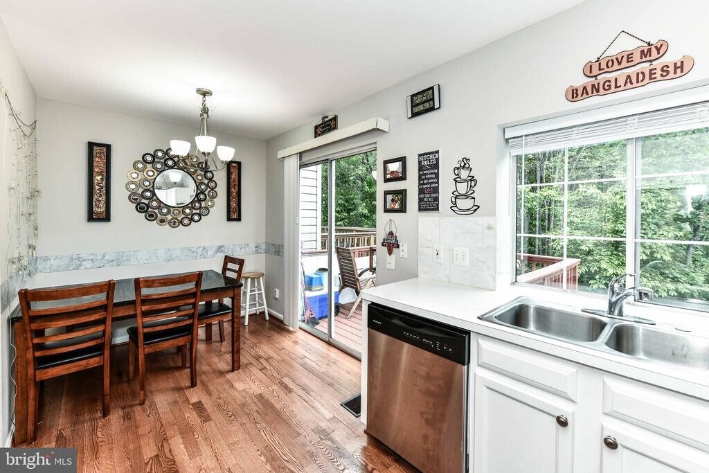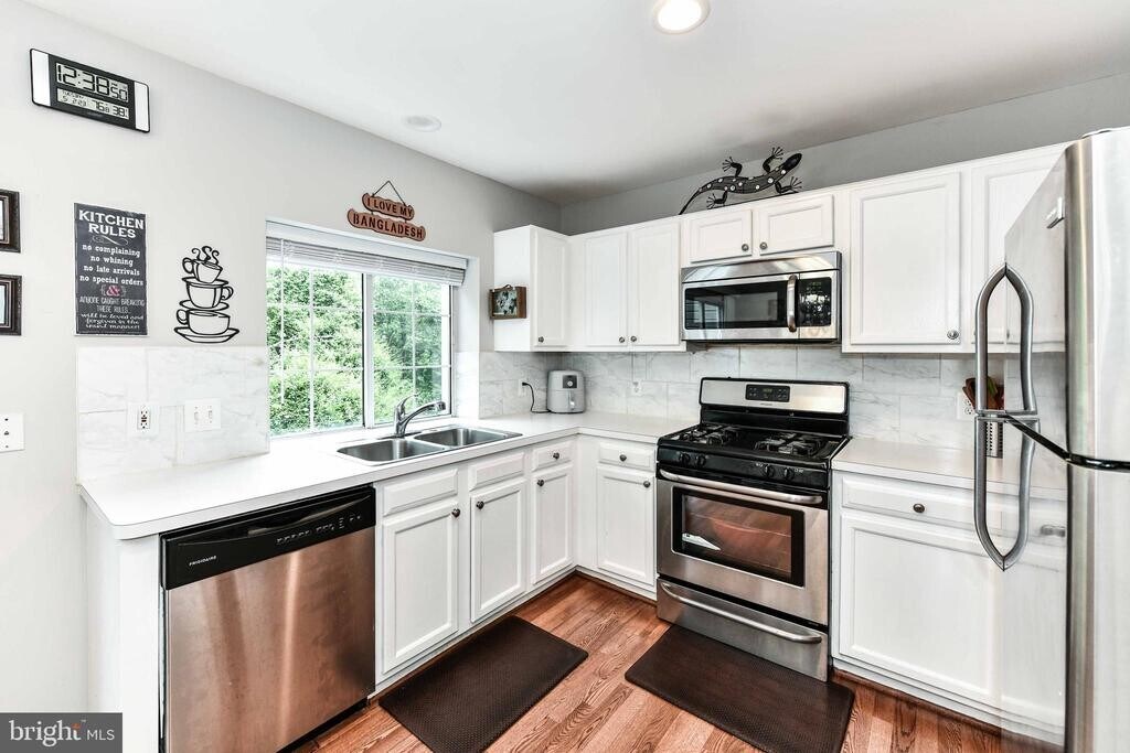 Welcome home to this charming three-level townhouse tucked away in the sought-after Carolyn Forest subdivision, offering easy access to I-95 and all the conveniences of Woodbridge living. Step inside to find beautiful hardwood floors, recessed lighting, neutral paint tones, and crown molding throughout the main level. The spacious living and dining areas flow into an updated kitchen featuring white cabinetry, a stylish backsplash, and stainless steel appliances. A cozy breakfast nook opens to a freshly painted patio deck overlooking trees for added privacy. Upstairs, the primary bedroom offers an en suite bath, joined by two additional bedrooms and another full bath. The lower level includes a full bathroom, laundry area, and a large recreation room with new sliding glass doors leading to a fenced backyard with a brand-new, freshly painted fence. Perfectly located just minutes from Lake Ridge, the Historic Occoquan District, restaurants, shopping, and major commuter routes including Route 123 and I-95. *Pet limit of 20 lbs.