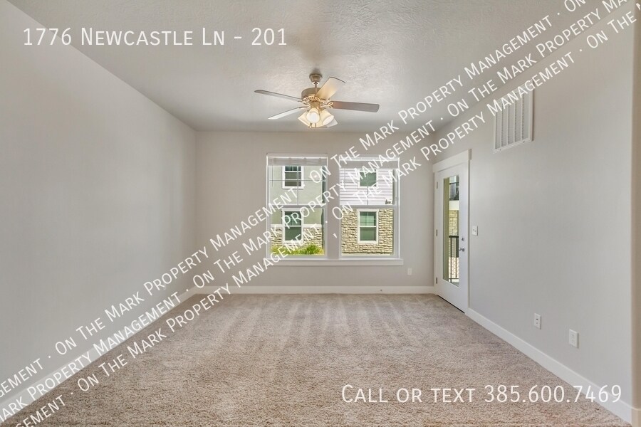 Pet Friendly $500 OFF 1st Months Rent Available Now Quailhill Community 1776 W Newcastle Ln, #201 Saratoga Springs, UT 84045 3 Bedroom/ 2 Bathroom/ 1 Car Garage 1272 Sq. Ft. 2020 Year Built $1,695 Rent - monthly $1,695 Deposit (oac) $155 Amenities Package - monthly (Covers a portion of the HOA amenities, water, sewer, and garbage) $45 Resident Benefits Package (Required, renters insurance encouraged) Pet friendly (limit two under 20 lbs each) Additional deposits and pet fees based on report Application fees $50/adult Lease Initiation $150 4-6 Month Lease (12 month renewal) Applications at On The Mark Rentals Website: Pet policy is under Resident Resources: /pet-policy/ ***ABSOLUTELY NO SMOKERS OR VAPERS*** All new paint and LVP flooring. Imagine living close to everything! The Quailhill community is right off Pony Express, so this upscale and spacious, second floor, 3-bedroom condo is located near parks, shopping, dining, medical, and other facilities. Private single car garage, and uncovered parking nearby! This community features a clubhouse, swimming pool, and a playground/park! PROFESSIONALLY MANAGED means a LOT for you!!! With everything done online (application, lease, rent payments, repair requests, etc), meeting up with the owner just to pay your rent is a thing of the past! Any needed repairs are done quickly by licensed professionals, so you won't be waiting for an owner to "fix" it, repeatedly. Security deposits are held in a trust account, with dispositions handled promptly and fairly after you move out, so you don't have to wonder if you'll ever get it back. Here, you can have confidence that everything is being handled in a professional manner. Schools: Alpine School District: Brookhaven Elementary, Frontier Jr. High School, Westlake High School. - Tenant pays: Gas, Electric, and Amenities. - Amenities Package includes: Common Area Maintenance, Clubhouse, Pool, Playground/Park, Water, Sewer, and Garbage - Resident Benefits Package: Renters Insurance, Furnace Filters, Credit Building, Identity Guard, and Credit Building All On The Mark Property Management residents are enrolled in the Resident Benefits Package (RBP) for $44.95/month which includes liability insurance, credit building to help boost the resident's credit score with timely rent payments, up to $1M Identity Theft Protection, HVAC air filter delivery (for applicable properties), move-in concierge service making utility connection and home service setup a breeze during your move-in, our best-in-class resident rewards program, and much more! More details upon application. ***ABSOLUTELY NO SMOKERS OR VAPERS*** ***Application Instructions: Go to On The Mark Rentals Website and fill out an application for each adult*** NOTE: Your application will be reviewed. If we both decide to proceed with the application, Credit and Background screenings are required for all prospective tenants over 18 years old. There is a $50 fee per screening. The $150 lease initiation fee is one time and only upon signing of lease. IMPORTANT - Deposit and Rent are due BEFORE Move-in. Contact Mark Cheney with any questions. Professionally Managed by On The Mark Property Management