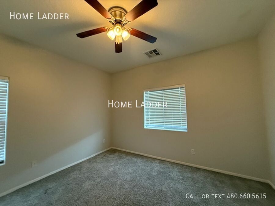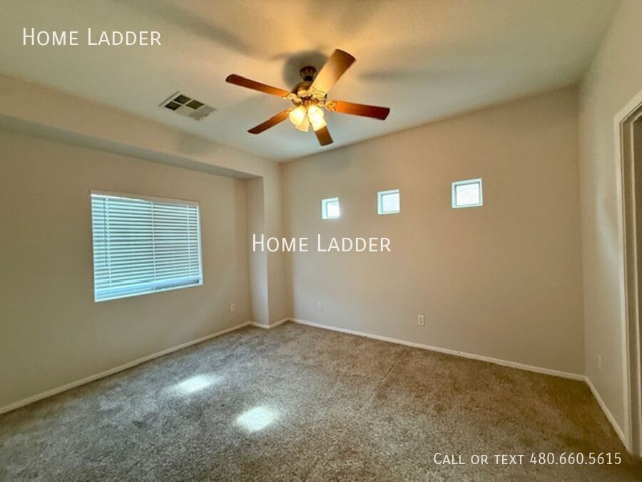 Beautiful 3 bedroom, 3 bathroom home for rent in the desirable Sierra Montana community in Surprise, AZ. Offering 1,386 square feet, this rare floor plan includes a first-floor bedroom and full bathroom — perfect for guests, a home office, or flexible living space. Upstairs features two spacious primary suites, each with private bathrooms and walk-in closets, giving everyone their own space. Energy-efficient solar panels help reduce electricity costs, and a whole-home water softener adds comfort throughout. Enjoy a private covered patio, attached garage, and low-maintenance living with HOA landscaping included. Located next to an elementary school and within walking distance to a neighborhood park, this home offers convenience, comfort, and functionality in a quiet Surprise location with easy access to shopping, dining, and Loop 303. All Home Ladder residents are enrolled in the Resident Benefits Package (RBP) for $50/month, which includes renters insurance, credit building to help boost your credit score with timely rent payments, $1M Identity Protection, HVAC air filter delivery, our best-in-class resident rewards program, and much more! More details upon application. Additional monthly fees: $9 admin and $35 pet rent/pet. One-time fees: $49 application fee per adult, $149 pet application per pet, $195 administration, and a security deposit equal to one month’s rent. 12-18 month minimum lease term. If moving in between 7/1 and 1/31, the lease term shall be 18 months. If moving in between 2/1 and 6/30, the lease term shall be 12 months. Lease must commence within 21 days of application approval. After approval, security deposit must be delivered to our office by noon on the next business day. The lease must start Monday-Thursday and not on any federal/state holidays. Solar fee: Additional $111.23/month