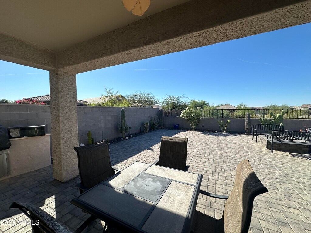 Beautiful 3-bedroom,2-bath home in the sought-after Estrella Mountain Ranch community! This 1,907 sq ft single-story home offers a spacious open floor plan with a bright kitchen and plenty of cabinet space. Enjoy relaxing in the inviting living area or step outside to a private backyard with a covered patio. Prime location next to a neighborhood park.. Experience resort-style living with access to lakes,pools,fitness center,and hiking trails!