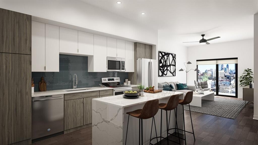 Salt Water Pool • 1 Acre of Sun-Washed,Elevated Amenities • 360° City Skyline Views • Gas-Fired Grills • Aerobic-Focused Fitness Center with Skyline Views • Outdoor Fitness Area • Sport Lawn with Bocce • Fire Pit • Outdoor TV-Viewing Areas with Grills • Putting Green • Landscaped Areas for Retreat and Relaxation • Covered Areas with High-