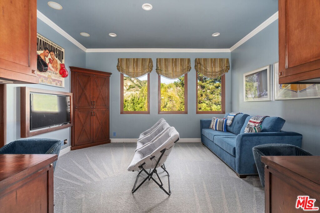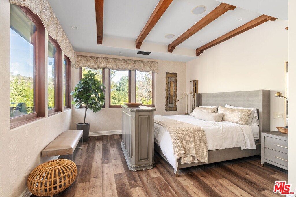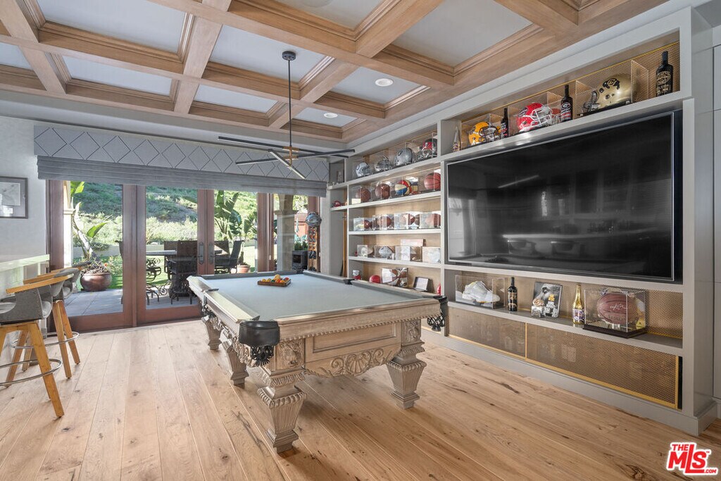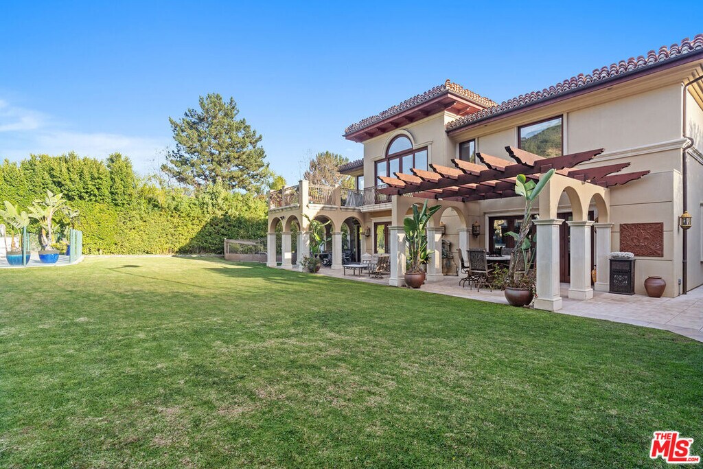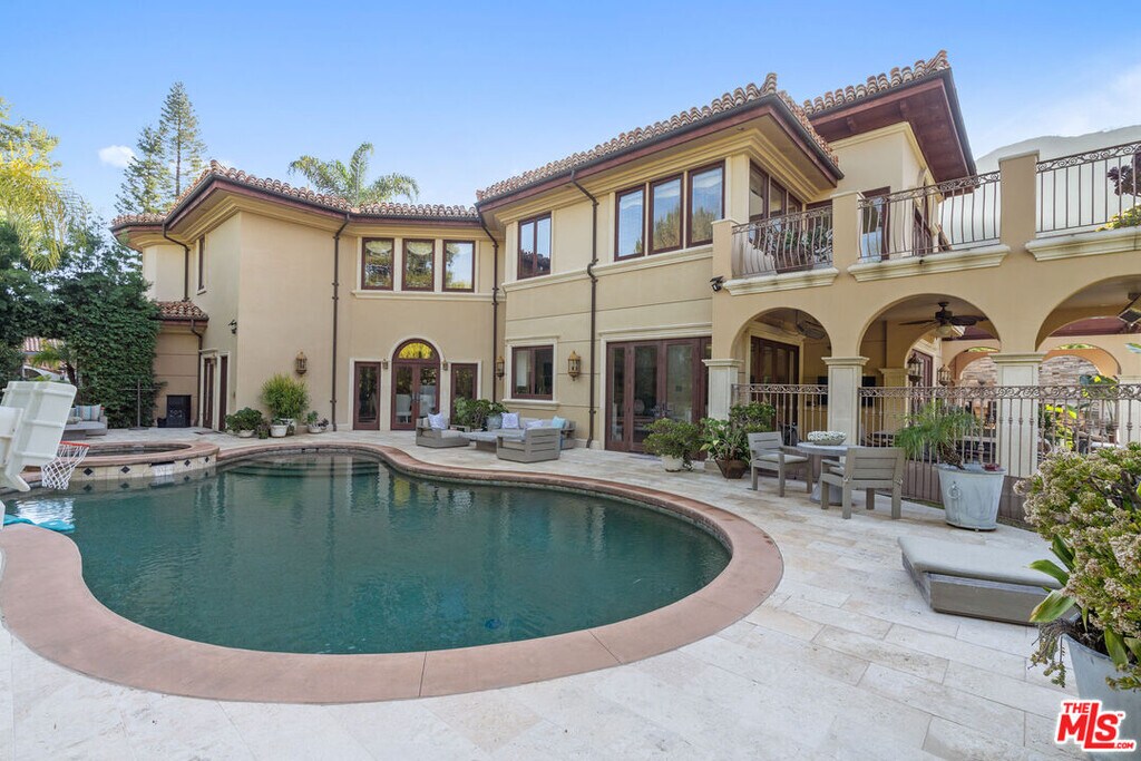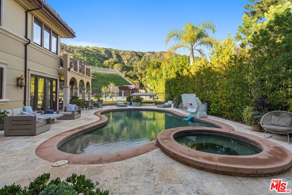 Turnkey Luxury Living in Guard Gated Palisades Country Estates, Fully Furnished, Move In Ready Situated within the prestigious guard gated Palisades Country Estates, this exceptional estate offers approximately 8,100 sq ft on nearly an acre, featuring 5 bedrooms and 7.5 bathrooms, including a convenient poolside bath. Originally built in 2004 and updated in 2020, the home showcases soaring ceilings, a dramatic entry, and seamless indoor outdoor flow. The chef's kitchen opens to multiple living and dining areas, ideal for both everyday living and upscale entertaining. Interior amenities include an entertainment room with bar, solid mahogany office with coffered ceilings, playroom with student workstations, gym, and wine cellar. Resort style grounds feature a pool, spa, expansive outdoor entertaining areas, lush landscaping, canyon views, and a newly added sports court with pickleball lines. Offered fully furnished with a stocked kitchen, truly move in ready. 24 hour guard gated security. Minutes to Palisades Village and the beach. MLS# 26670445