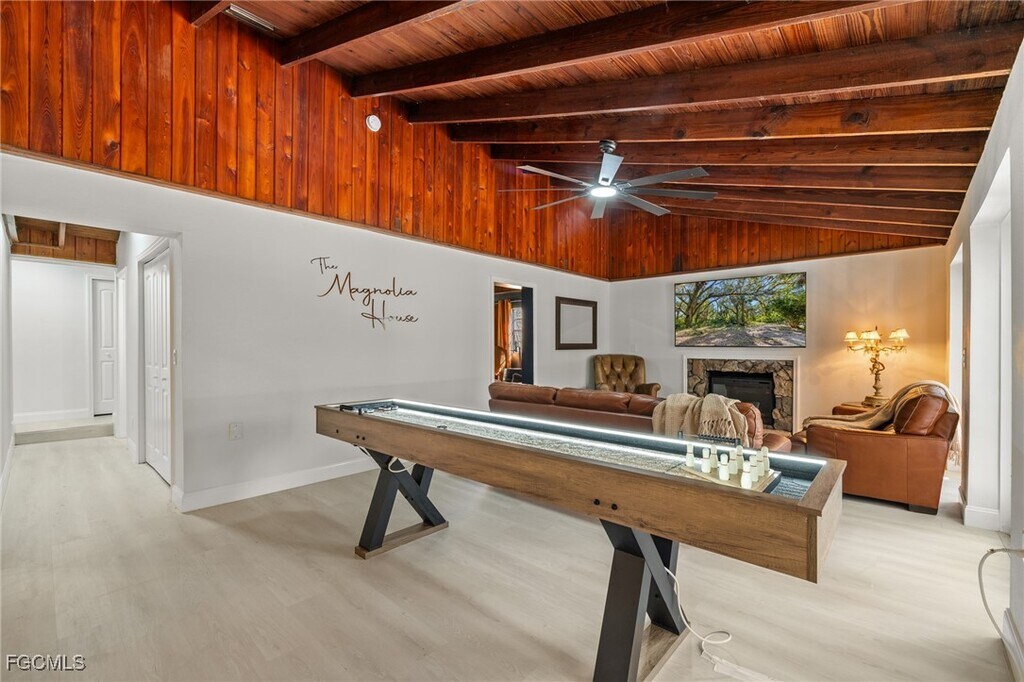 Welcome to The Magnolia House,the crown jewel of the Alva Oaks Community and your ultimate entertaining HQ. This is where farmhouse charm meets fun in all the best ways. With 3 bedrooms (including a master suite with a king bed,a second bedroom boasting 2 queens,and a third with a trundle perfect for sibling diplomacy),plus 2 full bathrooms,there’s room for everyone—and then some. The “lounge” is where the magic happens,featuring a futon,a dartboard,and the pièce de résistance: the “world’s smallest bar” (small in size,big on spirit). Need more? The living room has a glorious 9-foot shuffleboard table for competitive shenanigans. Step onto the wrap-around patio for ring toss or challenge your friends to a heated game of “drink pong” (hydration optional). Hungry? The dining area seats 10—yes,even your cousin who insists on bringing their pet salad. Outside,you’ll find a charcoal grill ready to make your BBQ dreams come true and a spacious yard perfect for kids,pets,or that spontaneous dance-off. Just steps away is the communal fire pit,ideal for s’mores,storytelling,or awkward sing-alongs. The Magnolia House isn’t just a place to stay—it’s an experience. Come for the charm,stay for the memories,and leave with a shuffleboard champion title (or not). If this is not to your liking or you're needing additional lodging there are 2 other homes on the compound!