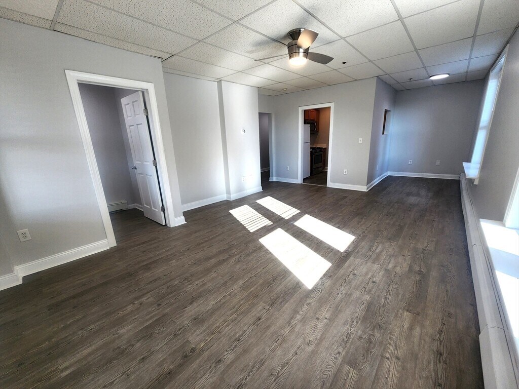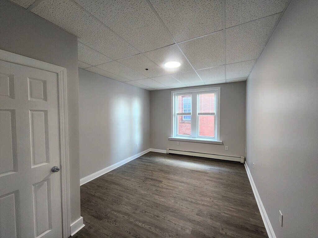 UPDATED 1 bedroom apartment boasting an OFFICE SPACE bonus! This 3rd floor unit is BEAUTIFUL with quartz kitchen counters,gas range,dishwasher,fridge and microwave. Very LARGE AND SPACIOUS living room with plenty of windows (3) for abundant Natural Sunlight charm. Waterproof flooring throughout for a clean and modern feel. Recently renovated bathroom for your comfort. The bedroom is very large and accommodates king size bedroom set no problem. Walk out to 3rd floor (common area) oversized balcony overlooking rest of town. Coin-Op laundry facility on 2nd floor. Security Cameras on common areas for your piece of mind. Well maintained building condition for your enjoyment. Gas heat will help keep your heating expenses low. First,Last,plus Security Deposit required with a 1 year lease agreement. Sorry,no dogs no cats. MLS# 73452989
