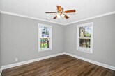 A beautifully newly renovated two bedroom one bath home with solid floors, stylish paint, beautiful bath with glass shower, off street secure parking for you and your guest. A long private driveway accessing a new wooden and gated fenced backyard where you can park in the shade. Front and rear entrance with covered deck and back door to the kitchen. The kitchen has updated shaker white cabinets and granite counter tops as well as stainless steel appliances. A lovely dining room and den combination with lots of light flowing into this home from the front and back. Call now for a tour. Only 5 minutes to Marietta Square and walk to Park Street Elementary.