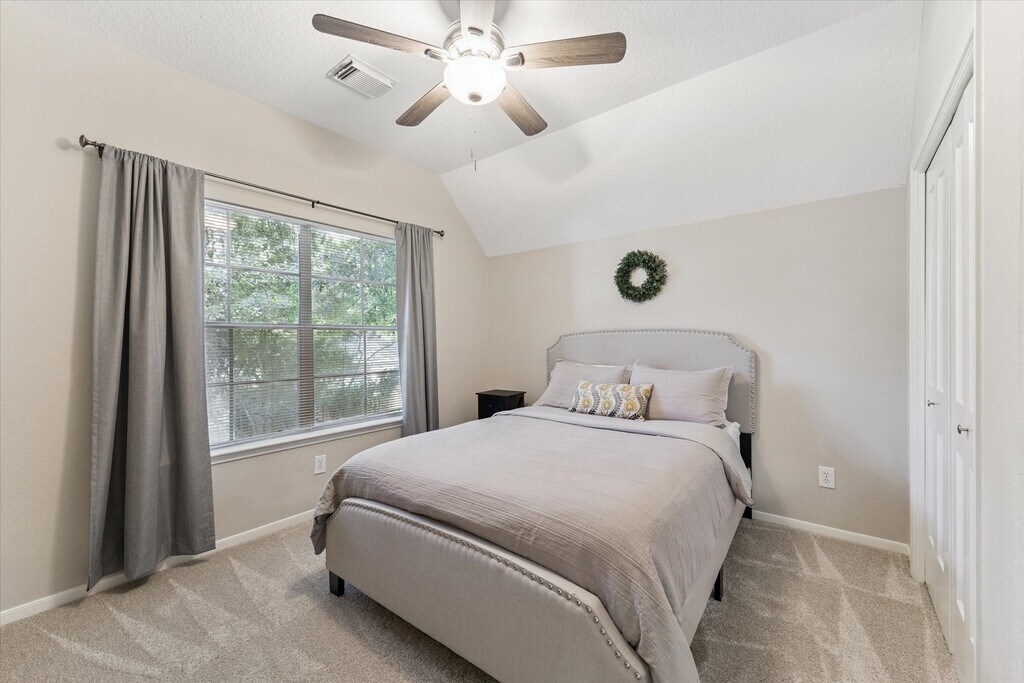 Welcome to Greywing,a beautifully updated 5-bedroom,2.5-bathroom home located in the heart of The Woodlands. Nestled among towering trees,this spacious two-story features soaring ceilings,abundant natural light,and an open-concept layout perfect for entertaining. The primary suite offers privacy and luxury,while the upstairs includes four additional bedrooms. Downstairs has a dedicated office with French doors provides a quiet space to work from home. The modern kitchen boasts Quartz countertops,ample cabinetry,and stainless steel appliances. Enjoy peaceful outdoor living with a covered screened patio and a wooded backyard. Zoned to top-rated Conroe ISD schools and minutes from parks,shopping,dining,and trails,this home combines comfort,style,and convenience. Don’t miss your chance to live in one of The Woodlands’ most desirable neighborhoods! MLS# 43551842