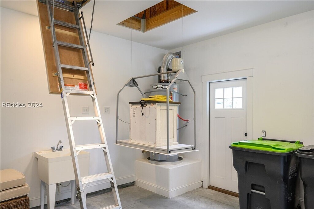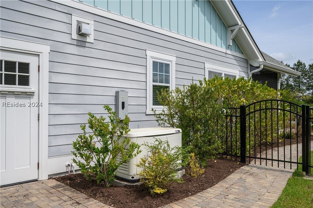 Custom built home on a large lot in gated Hilton Head Lakes overlooking Lagoon with view of the golf course. This home is 3 bed 2 bath home that has a beautiful kitchen w/ Bosch appliances, gas range/ oven, wall convection oven, filtered cold water for cooking & drinking. Paved walkway to large patio & screened porch, Generator, Fenced Yard, ELECTRIC LIFT w/ control FOR EASY ATTIC STORAGE ACCESS. This neighborhood features Community pool, pickleball, fishing, fitness center, and RV & boat storage.
