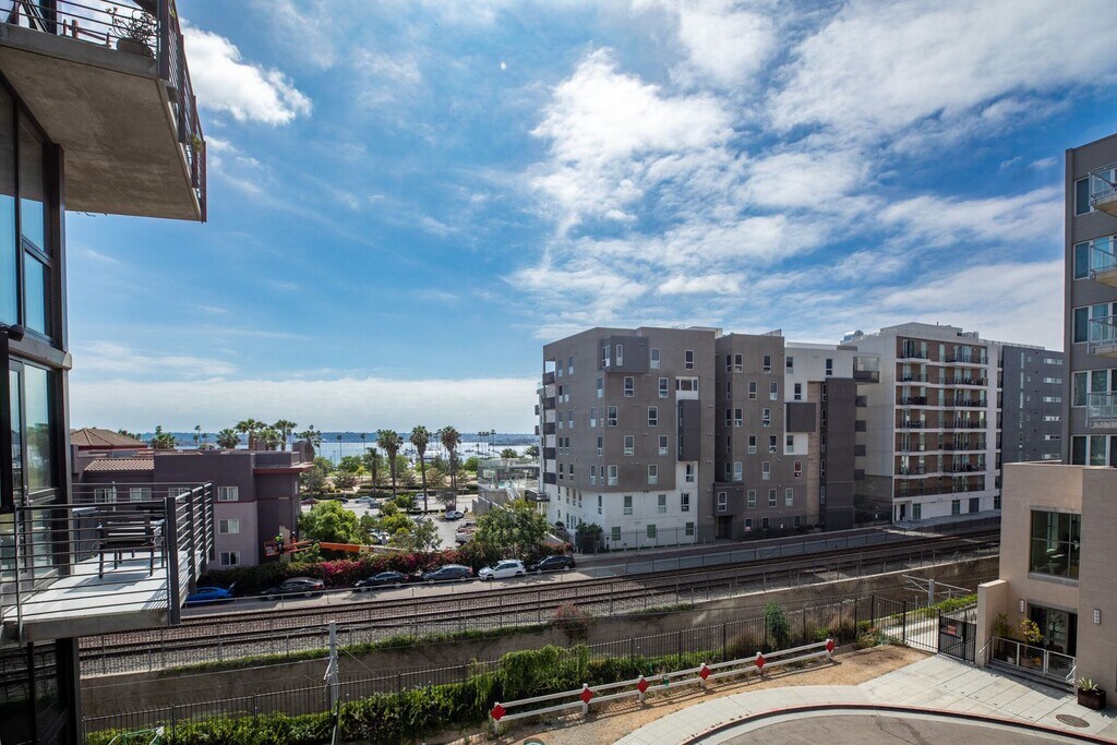 Impressive 2-story urban loft in the heart of Little Italy downtown SD. Very large oversized balcony 21' x 10', with views to the Bay! Industrial loft aesthetic including 17" high ceilings, concrete walls, exposed ductwork, metal stairs, floor-to-ceiling windows, & flexible open layout. The master bedroom has walk-in closet and mechanically operated window coverings with remote. The 2nd bedroom has a Murphy bed and a flexible layout. Also included is a laundry room with a washer and dryer, central air, and heat. 2 side-by-side parking unground. Amenities include a fitness center, hot tub, landscaped central courtyard, rooftop deck with seating with panoramic Bay/ocean views. Professionally managed by Please call Scott Colbert Scott@ DRE# 01836754