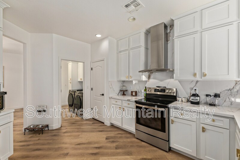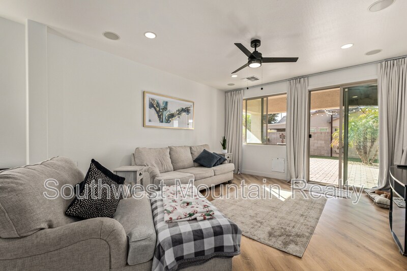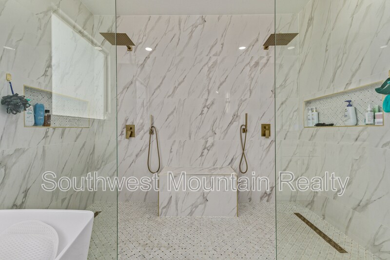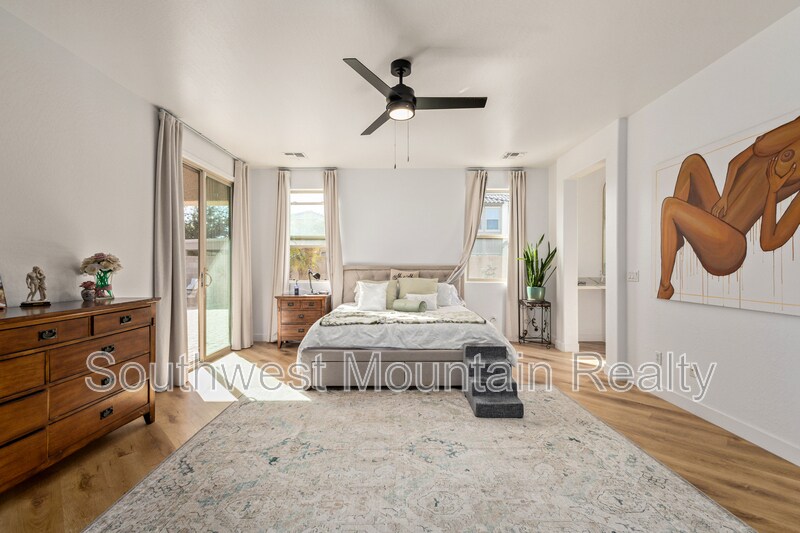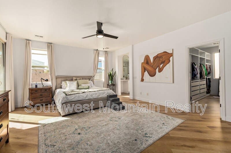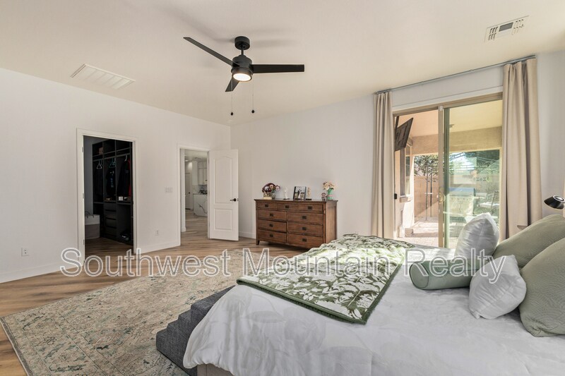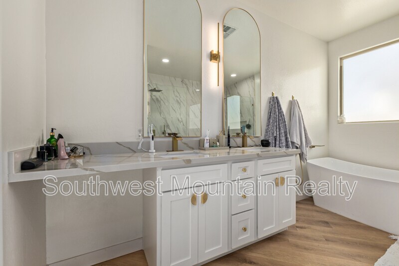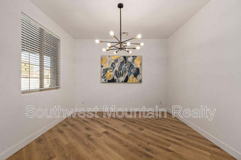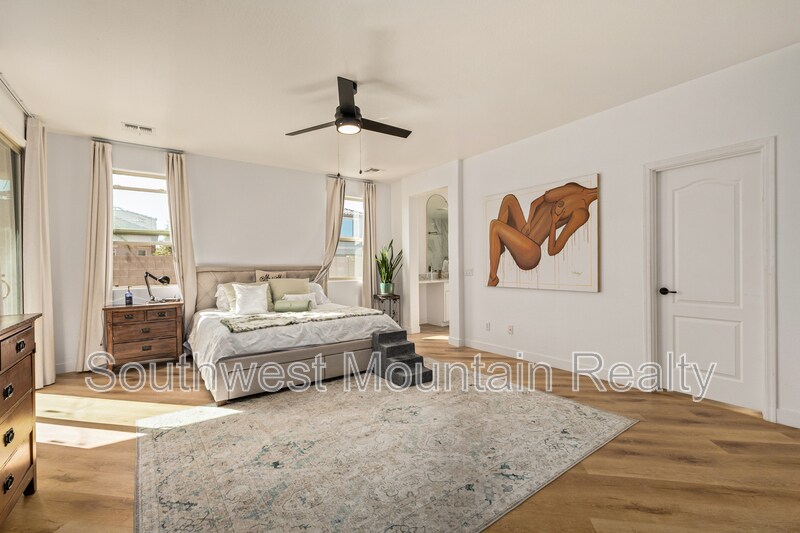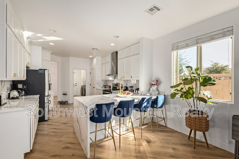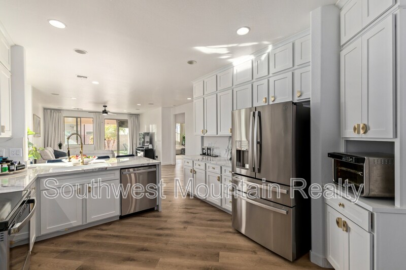 Welcome to this beautifully remodeled single-story residence offering refined comfort and modern elegance in the heart of Goodyear. Spanning approximately 2,205 sq ft, this home features 3 spacious bedrooms, a dedicated den, and 2 designer bathrooms, ideal for both everyday living and elevated entertaining. Upgraded Quartz slab countertops throughout in bathrooms as well as kitchen! The open-concept layout showcases updated flooring, fresh interior paint, contemporary lighting, and a fully upgraded kitchen with sleek modern finishes, GORGEOUS Quartz counters with a water fall edge, stainless-steel appliances, and gold hardware. The primary suite is a true retreat, featuring separate his-and-hers walk-in closets and a luxurious spa-inspired master bathroom complete with modern finishes, generous counter space, and a calming, resort-style ambiance. Step outside to your private backyard oasis, highlighted by a sparkling pool and covered patio, perfect for Arizona summers, evening relaxation, or hosting guests. The low-maintenance yard offers luxury living without the upkeep. Additional highlights include: Attached 2-car garage Flexible den ideal for home office or media room Updated guest bath with modern design Quiet, well-established neighborhood Convenient access to shopping, dining, and major freeways This home delivers a rare combination of style, comfort, and privacy, making it an exceptional opportunity for tenants seeking a high-end rental or executive residence in Goodyear. Security Deposit is Equal to one months rent Cleaning Fee of $300
