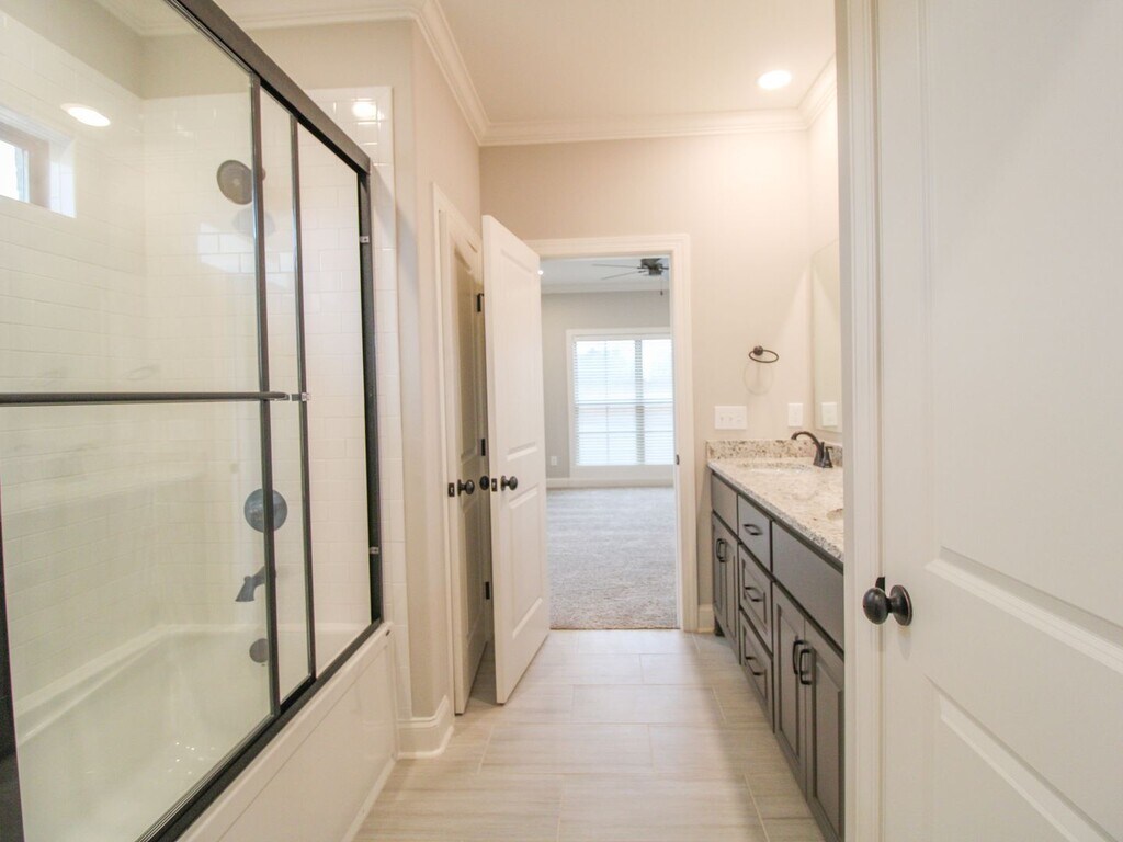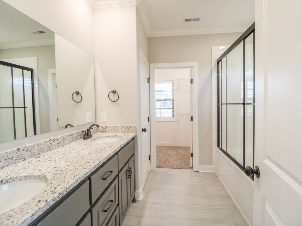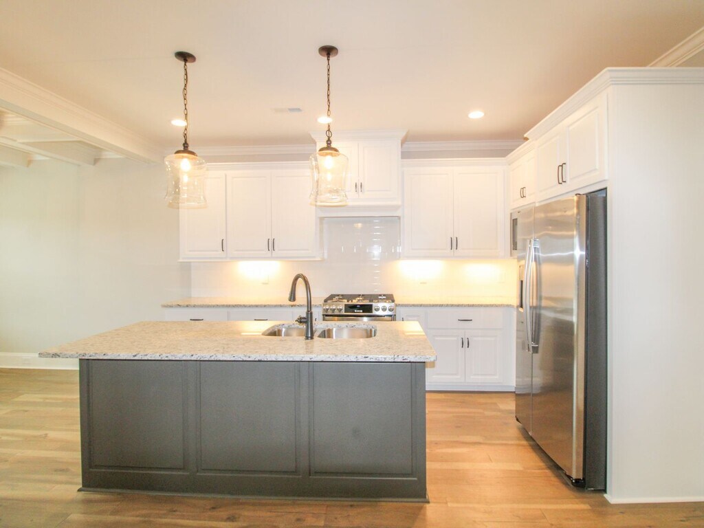 This open floor plan features soaring ceilings, hardwood flooring, 3 spacious bedrooms, 2.5 baths plus Bonus Room. The kitchen is open to the living area and features custom cabinets with kitchen island, granite countertops and stainless steel appliances. The owner's suite is on the main level and features a private bath with double vanity, tile sub/shower combo and spacious closet. The half bath is located on the main floor and easy access for guests. The upstairs has two bedrooms that share a full bath and a large Bonus Room. This is a must see home!