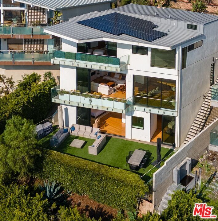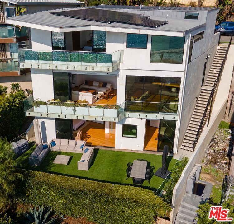 Experience the pinnacle of coastal living from this architectural masterpiece, where breathtaking 180-degree ocean vistas are the star. A statement of modern elegance, the furnished home welcomes you through a grand pivot door and into a light-filled interior defined by clean lines, soaring ceilings, and seamless indoor-outdoor flow. Designed to maximize its commanding setting, every room captures panoramic ocean views through walls of glass. The open-concept floor plan includes 4 spacious bedrooms, 4.5 impeccably appointed baths, and a private elevator for ease of access across all levels. The gourmet kitchen is a true show piece featuring Sub-Zero and Wolf appliances, Bosch dishwasher, wall-mounted espresso machine, dual workstations, and a temperature-controlled wine cellar all centered around a dramatic oversized island. Ideal for both intimate dinners and grand-scale entertaining, the living and dining areas open to expansive outdoor terraces through disappearing glass doors. The primary suite is a private sanctuary, offering breathtaking views, direct terrace access, and a spa-like bath experience. Every finish has been thoughtfully curated, and every detail has been executed with precision. Located just a short seven-minute walk to the sand via the scenic Castellammare footbridge, this is coastal California living at its finest, elevated, effortless, and extraordinary. MLS# 25596849