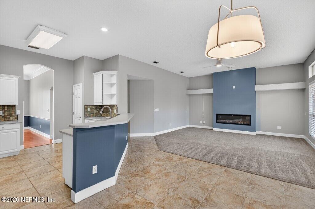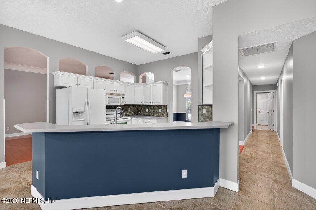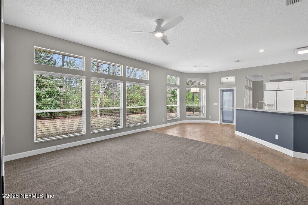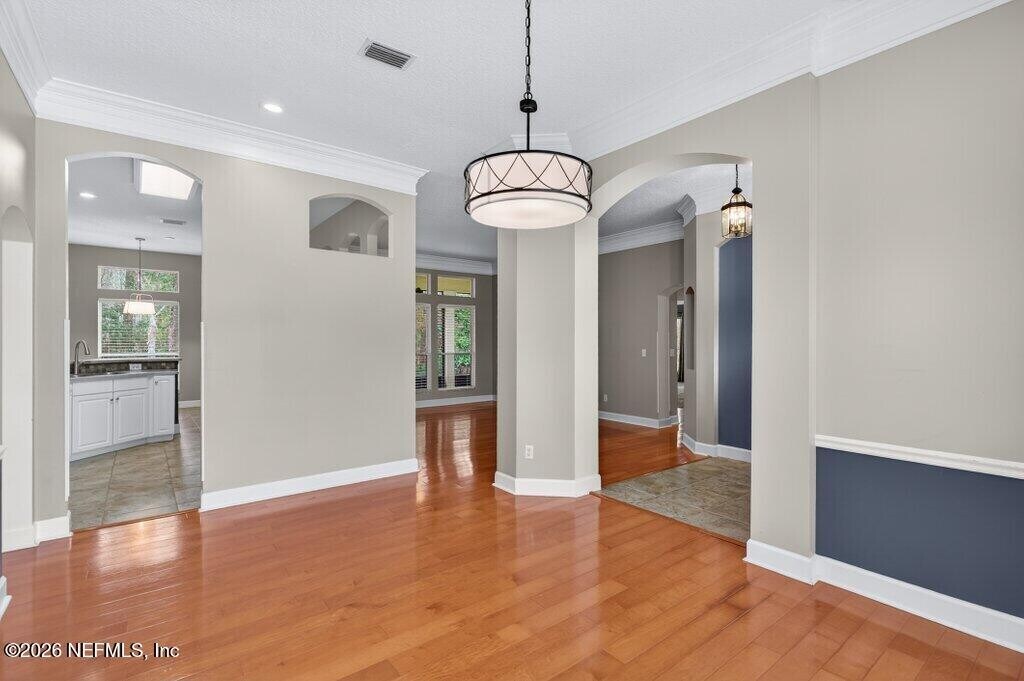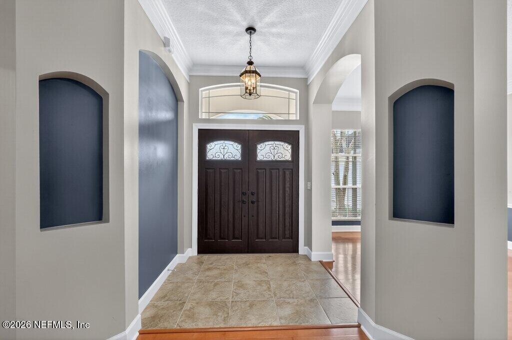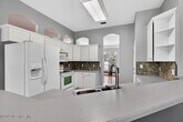 Welcome to this spacious 6 bedroom,4 bathroom traditional home nestled on a private .27-acre cul-de-sac lot in the highly sought-after Eagle Harbor Golf Community. Offering 2,923 square feet of thoughtfully designed living space,this home features a 3-car garage and an expansive driveway,perfect for multiple vehicles and guests. Step through the double door entry into a light-filled interior showcasing engineered hardwood floors,crown molding details,and soaring ceilings. The open living area is anchored by a built-in fireplace and flows seamlessly into the kitchen with ample cabinetry,breakfast bar,and large windows overlooking the wooded backyard. The primary suite is conveniently located downstairs and features carpet,a beautifully updated bathroom with dual vanities,a garden tub,and separate shower. On the main level,you'll find two secondary bedrooms connected by a Jack and Jill bathroom -providing exceptional flexibility for guests and extended family. Upstairs bedrooms provide generous space and flexibility for family,guests,office,or bonus rooms. Enjoy peaceful mornings and private evenings on the covered and screened back porch backing to mature woods. Lawncare and landscaping are included,along with HOA and CDD. Residents of Eagle Harbor enjoy resort-style amenities including pools,golf,tennis,pickleball,clubhouse,boat ramp,pier,and miles of sidewalks. Conveniently located near NAS JAX and Baptist Hospital,plus shopping,dining,and entertainment. MLS# 2131290