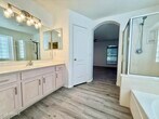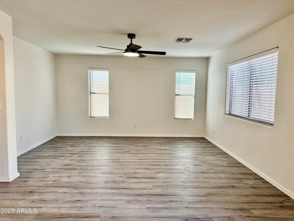 Beautiful House in desired Gilbert Ranch! Fresh interior paint and new laminated flooring. Huge master suite and 3 secondary bedrooms with a Den and one bath upstairs. Downstairs separate formal dining with a French door open to the side yard. Open kitchen and a great room,laundry room and a powder room. Covered patio,low maintenance front and back yard. Close to San Tan Mall,restaurants,schools and San Tan Fwy 202.