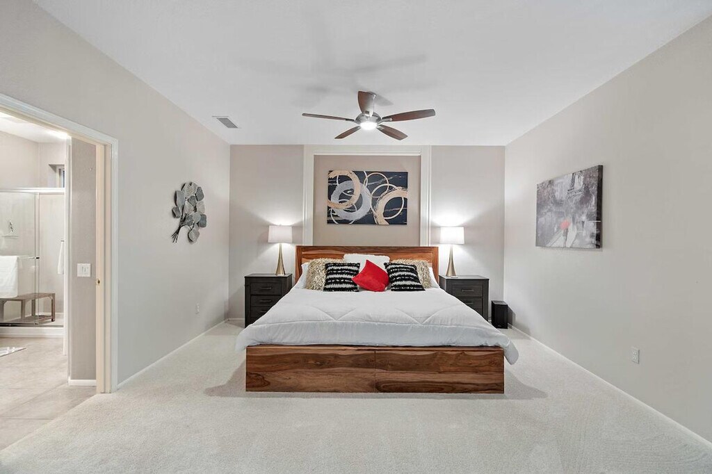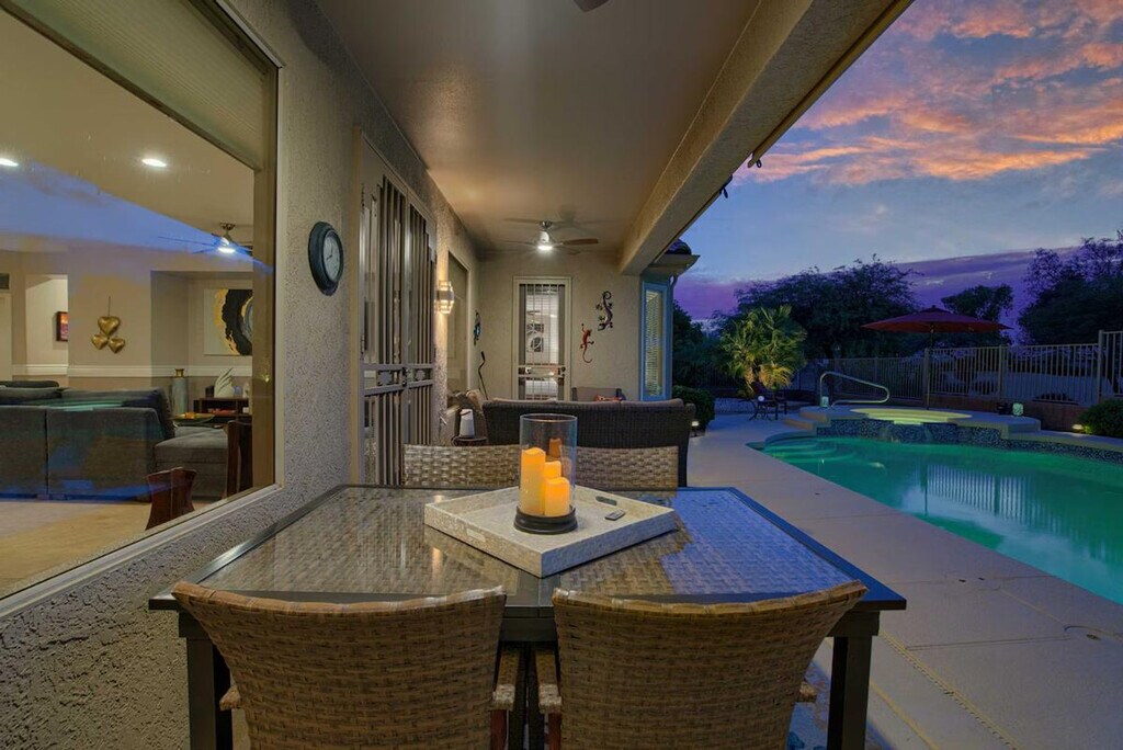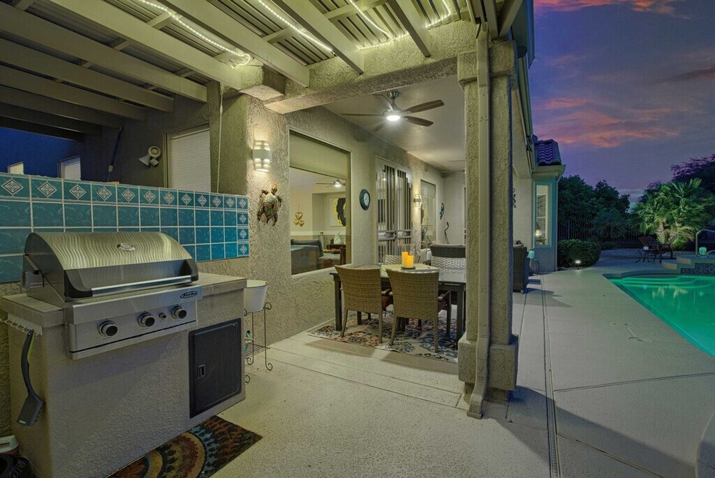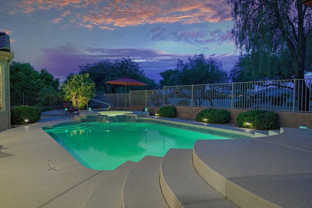 The advertised rate of $4,142/month is the lowest available price, based on a 30 day(s) stay with a move-in date of August 30, 2026. Rates vary depending on the duration of stay, season, and other parameters. For exact pricing and additional pricing components, please visit our website and enter your desired move-in and move-out dates. The rate is applicable when billed upfront; it can be higher if billed in multiple payments. Feel at home in this gorgeous Surprise home, a stunning desert oasis. This 2-bedroom, 2-bath vacation rental is located on a golf course and offers 2,016 square feet of living space. This home features a fully equipped kitchen with stainless steel appliances, a drip coffee maker, a blender, dishware and flatware, and a breakfast bar. Enjoy indoor entertainment with 3 Smart TVs with YouTube TV, a dining table, and board games. Outdoor amenities include a furnished patio with a dining table, a gas grill, and umbrellas, as well as bikes, golf clubs, tennis rackets, and pickleball equipment. The home also includes central air conditioning, a washer and dryer, towels and linens. A registration fee, which includes access to the community amenities, is required and paid on-site. The fee is $200 per person for a 1-3 month stay (2 renter cards max), $300 per person for a 4-6 month stay (2 renter cards max), or $500 per person for a 7-12 month stay (2 renter cards max). Additional cards are available with 1/2 payment of annual assessment per card. Enjoy resort-style living in the Grand, with access to numerous pools, recreation centers, and golf courses. Explore the community using the electric golf cart. At day’s end, enjoy the serenity of the gorgeous backyard. Smoking, pets, events, parties, and large gatherings are not allowed. One guest must be at least 45 years old, and any other guests need to be 19 years old or older. The property is located in an age-restricted complex and is not suitable for children. The pool will not be heated unless you reach out to the Guest Contact after arrival. Includes office space. Guests will have access to the entire property via self check-in. [SI]