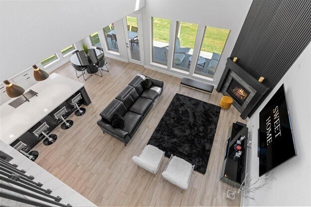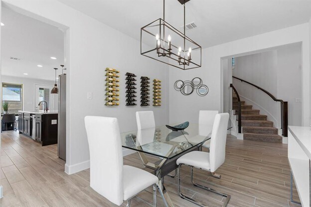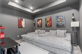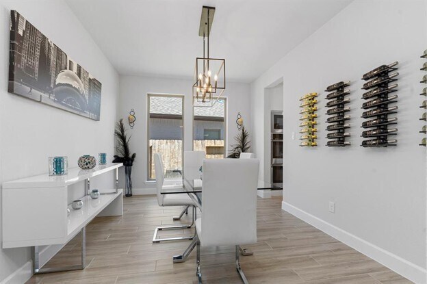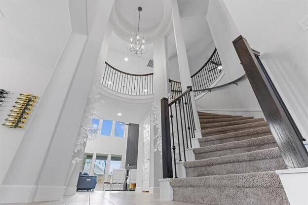 The home nestled in a private cul-de-sac of serene Artavia,with no rear neighbors. A two-story floor plan with modern amenities and upgrades. The entry features a 20-foot ceiling. French glass doors lead into a private study,while the formal dining room opens to an iron rotunda staircase. The open concept is adorned with a wall of windows and a custom fireplace. This area transitions into the gourmet kitchen,with a generous quartz countertop island,tall custom cabinets,double ovens,a 5-burner range,and a walk-in pantry. The first-floor primary suite shows a curved wall with a sitting area. Bathroom with dual vanities,tub,shower,and two walk-in closets with direct access to the utility room. The first-floor guest room includes a private bathroom. Upstairs,you’ll find a game room,media room,and two guest bedrooms. Additional features include eight-foot doors throughout all first-floor rooms,a mudroom off the three-car garage,a sprinkler system,and a large covered patio. MLS# 56778856