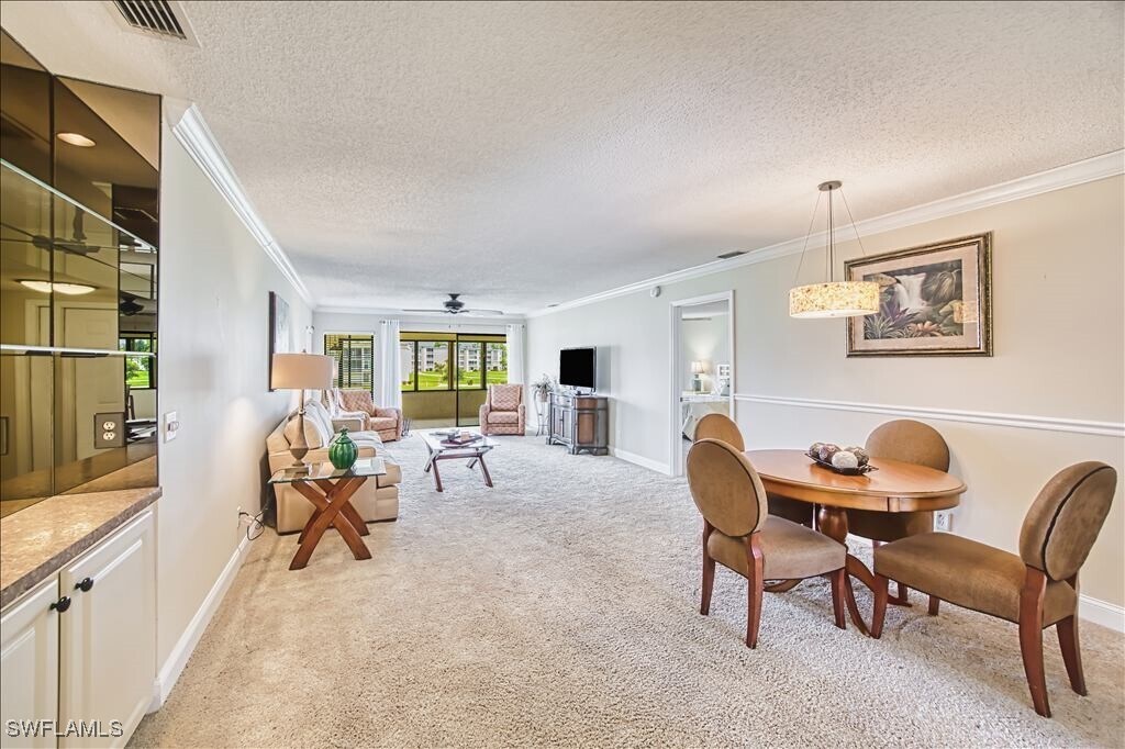 Available to rent NOW through 2026 in the Seven Lakes Golf & Tennis community. Lease Length is negotiable up to 1 Year with a 4-month minimum. Seasonal lease,Jan 1st- April 30th,2026 is $3,500. per month. Annual Lease is $1995. per month. Elegantly decorated with quality furnishings. TURNKEY-FURNISHED. Bundled Golf Community with Free Golf for 2 Tenants. Carport #23 included. Well maintained 2 Bedroom,2 Bathroom Condo located on the 2nd Floor. Expansive Tiled Lanai overlooking the 18th green with views of the 1st and 2nd greens. This condo has Storm Shutters on all windows,both Electric and Manual. This Palmetto Floor Plan is Spacious offering 1654 sq ft with 2 Split Master Bedroom Suites. The Main Master has a Walk-in Tile Shower,lighted Dressing Area and large Walk-in closet with pull down Attic Stairs for extra storage. The 2nd Master Suite features 2 large closets. Full size Washer and Dryer in a separate laundry room. The remodeled Eat-in Kitchen features a Pantry with roll out drawers and built in Desk. Large living room and dining room space with Crown Molding and Chair Rail. Lighted Dry Bar. AC is 2023. Hot Water Heater is 2020. Roof is 2023. Extra storage area in Lanai. This condo is located within walking distance to one of the community pools. This Active Adult 55+ Community offers 6 Heated Pools,6 Har-Tru Tennis Courts,Shuffleboard,Bocce ball,Pickleball,Library Card rooms,Exercise room,Billiards,Wood Shop,Hobbies,Crafts,Cards,Restaurant,Full Time Recreational Area with Dinners,Movies and Dancing Events. 24 hour manned guard gate. Rent includes Bundled Golf,Electricity,Internet Wi-Fi,Cable,Water,Sewer and Trash. NO Golf Transfer fees,NO Golf Green Fees and NO Food Minimum in the restaurant. Centrally located for Dining,Shopping & Beaches! Located across the street from Bell Towers and a short distance to RSW Airport! Security deposit and post cleaning fee collected up front. Tourist Tax of 11.5% is collected on leases less than 6 months. Sorry,no pets and no smoking. Come visit paradise soon!