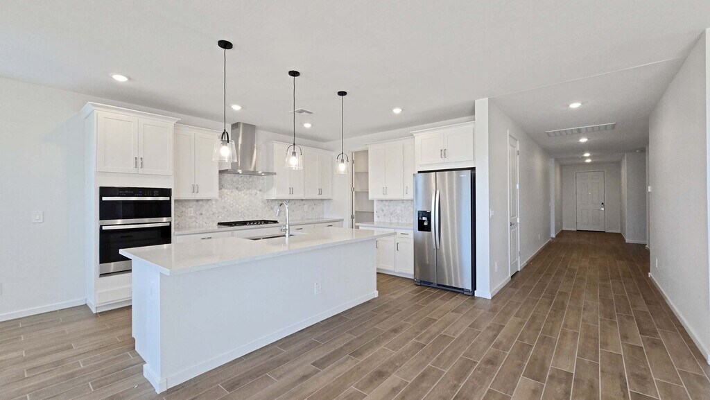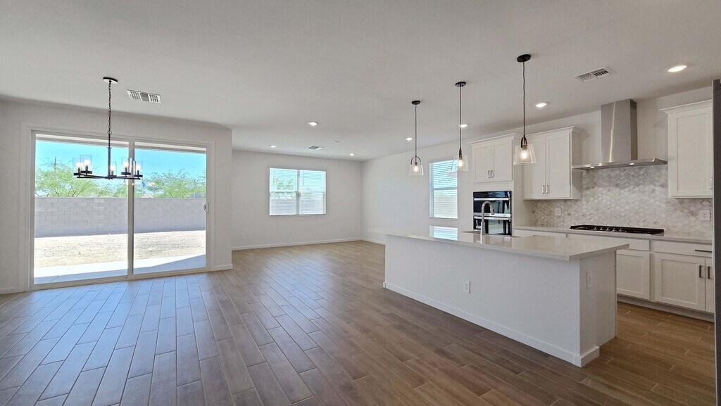 Be the first to live in this brand-new 4-bedroom, 3-bath home in a popular Goodyear subdivision near Citrus Rd and Camelback. The upgraded kitchen features quartz countertops, a gas cooktop and a custom backsplash, making it a standout space for cooking and entertaining. All bathrooms include double-vanity sinks, and the home offers generous square footage for the price. Modern finishes throughout complement the thoughtfully designed layout in this newly built residence. $2000 security deposit, $400 cleaning deposit, NO PETS, $20 monthly admin fee. Tenant must maintain tenant insurance during their lease.