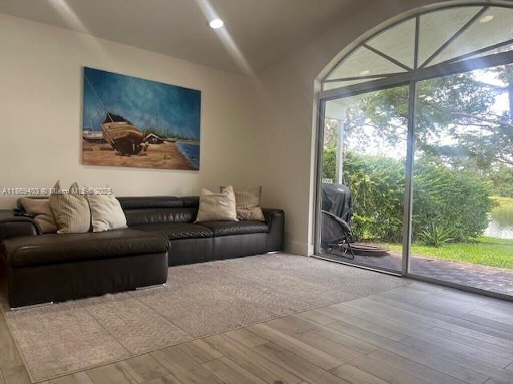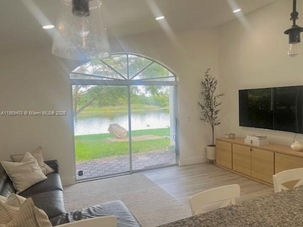 Courtesy of United Realty Group Inc Posted by Andrew Coleman with EXP Realty Stunning lakefront home for rent in the desirable SilverLakes community of Pembroke Pines! This updated 3-bedroom, 2-bath residence offers a bright open layout w/ wood-look tile floors, vaulted ceilings & recessed lighting. The modern kitchen features stainless steel appliances, granite counters, and cabinets, opening to the family room with serene lake views. The primary suite includes vaulted ceilings, a custom walk-in closet, and a spa bath with dual vanities and frameless glass shower. Two bedrooms share an updated bath with modern finishes. Step outside to your private backyard with patio seating under mature trees. Perfect for relaxing or entertaining by the water. Conveniently near A-rated schools, shopping, dining, parks & highways. Stylish, move-in ready, and designed for comfort!