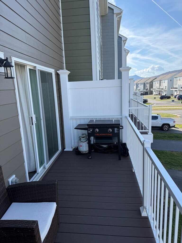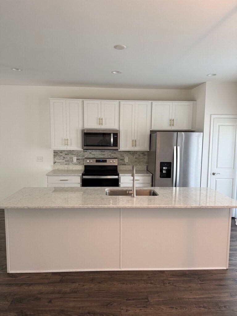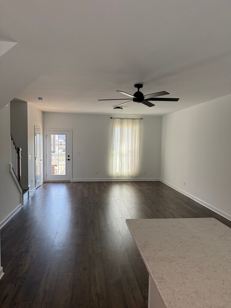 Luxury townhome for rent in the Daleville Town Center! Ready for occupancy immediately. 3 story, 2 bed, 2.5 bath. Hardwood floors throughout. Quartz countertops in the kitchen with a large 9 foot island. Stainless steel appliances. This unique home offers a covered balcony and covered front porch with beautiful views of the mountain range and the amphitheater where the summer concerts are held. There's a deck on the back of the house and a single car garage. Both bedrooms offer large walk-in closets with the master bedroom boasting a vaulted ceiling. First floor is an open study/rec room. Second floor is the main level with kitchen and living room. Top floor is both bedrooms and laundry room. All curtains, ceiling fans, and lighting fixtures pictured are included. Only 60 seconds from multiple restaurants in the Town Center and the YMCA. Very convenient and beautiful place to live. Great for young professionals or a family. 1, 2, or 3 year lease agreements available with guaranteed rate lock. No smoking. Pets allowed. Security deposit (refundable) and first month's rent due at signing. Reach out to schedule showing