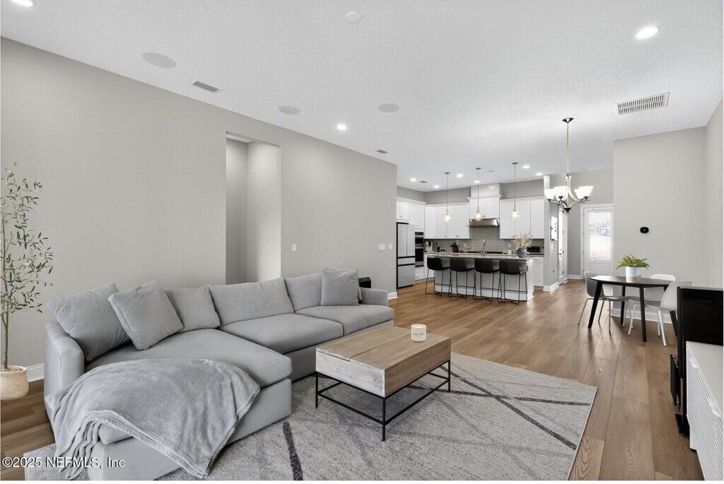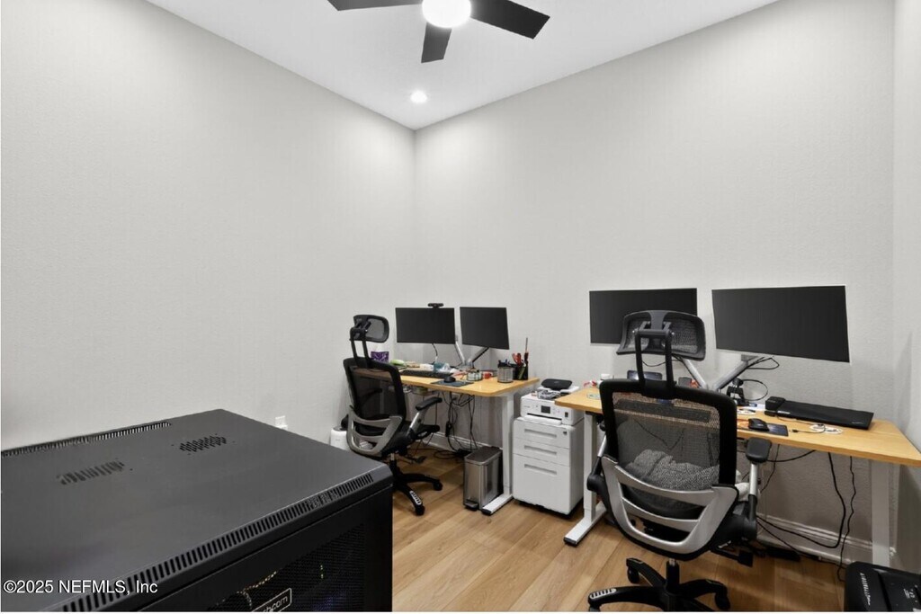 Gated community home in Franklin Square at Nocatee! 3 beds 2.5 baths. This thoughtfully designed home offers modern convenience,stylish upgrades,and a lake view! Step inside to find an inviting open layout with natural light and elegant finishes throughout. The primary suite is conveniently located on the first floor. The downstairs also features a dedicated office,laundry room and half bath. Upstairs,you'll find two additional bedrooms and a spacious loft,ideal for a media area,playroom,or additional workspace. Enjoy serene lake views from your extended,screened-in paver patio- the perfect spot to relax or entertain! The epoxied garage floors,automatic shades,water softener,and upgraded light switches,add both comfort and value to this move-in ready home! Located within NE Florida's top master-planned communities,you'll have access to world-class amenities via golf cart: 2 waterparks,multiple pools,parks,trails,shopping,dining,and top-rated St johns County Schools MLS# 2119820