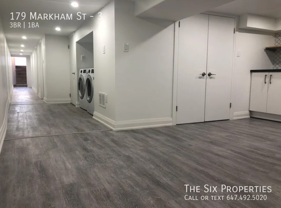 179 Markham Street, Toronto, ON, M6J 2G7 3 Bedroom Basement Apartment near Queen-West / Trinity Bellwoods ***ONE MONTH'S RENT MOVE IN BONUS** Available Immediately Rent: $2,500 - All inclusive Includes: - Ceiling height is low - 3 Bedrooms + 1 Bathroom - Eat in kitchen - Two toned white slab cabinets - In suite washer & dryer - Air conditioning & Heating on separate system - Outdoor BBQ space - Parking available - No smoking inside - Under professional property management Minutes to: Trinity Bellwoods, shops, restaurants, amenities, U of T, TMU, George Brown, hospitals, Bloor Street, College Street, Queen Street, Kensington Market, Financial Core, Toronto Western, 24 hour Queen & Bathurst Streetcars