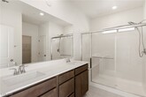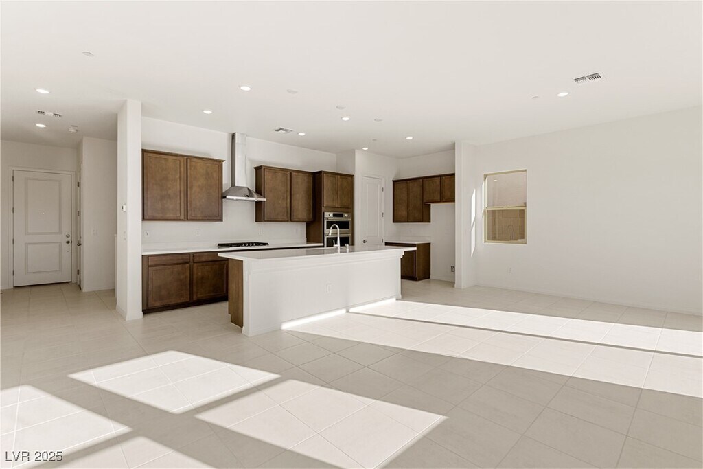 Discover modern living at its finest in this brand-new construction home located in the heart of Summerlin. This stunning 3-bedroom, 2.5-bath residence blends fresh, contemporary design with everyday comfort. Step inside to an open-concept layout featuring sleek tile flooring, abundant natural light, and thoughtfully designed spaces throughout. The upgraded kitchen serves as the centerpiece of the home, showcasing rich mocha cabinets, stainless steel appliances, a large island, and elegant quartz countertops. A spacious pantry offers ample storage. Upstairs, a generous loft provides the flexibility for a second living area, home office, or media space. All bedrooms include blinds and are designed with comfort and privacy in mind. The primary suite features a well-appointed bathroom and a walk-in closet. Two additional bedrooms share a modern full bath, while the convenient upstairs laundry adds everyday ease. Located near top-rated schools, parks, trails.