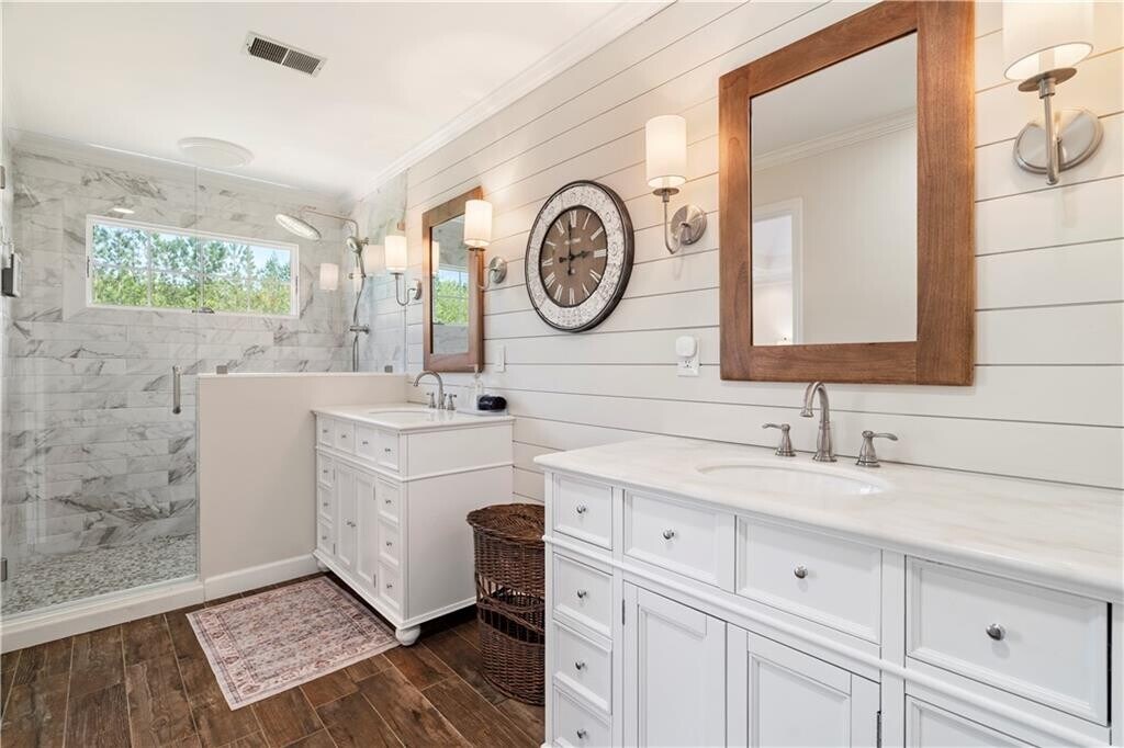Farmhouse Retreat – Mid/Long-Term Lease on 1.2 Acres Furnished OR Unfurnished! Lawn maintenance and bi-weekly cleaning included in monthly rent. Marietta,GA - Available January 1 - Moments to Publix,Target & Downtown This beautifully maintained home is nestled on 1.2 private acres with easy access to shopping,dining,and downtown Marietta. Only 7-10 minutes from I-75,you are right in the middle of everything while also enjoying your own private retreat. Renovated farmhouse-style kitchen with butcher block countertops,stainless steel appliances,and upgraded flooring. Light-filled den with built-in bookcases. Convenient main-level laundry. Gorgeous Owner's suite bath with oversized shower,dual vanities,shiplap accents,and wood-look ceramic tile. Secondary bath with deep soaking tub,classic penny tile and soft close custom cabinetry. Real hardwood floors and plush carpet throughout. Attached 2-car garage and all the space you need to breathe.