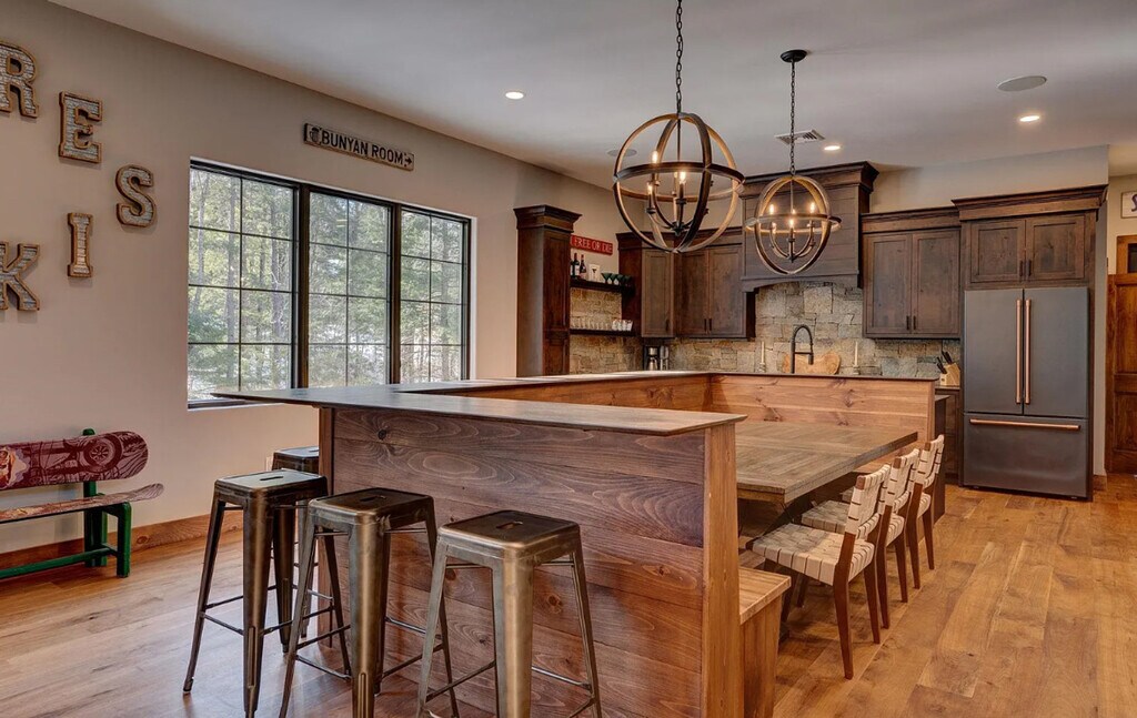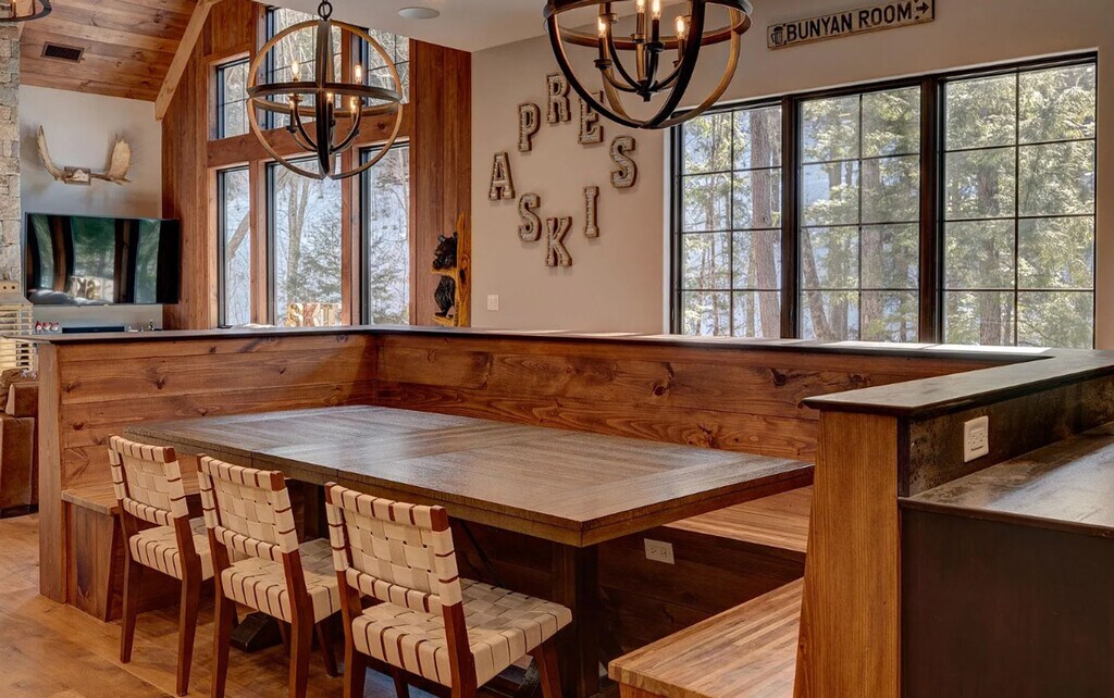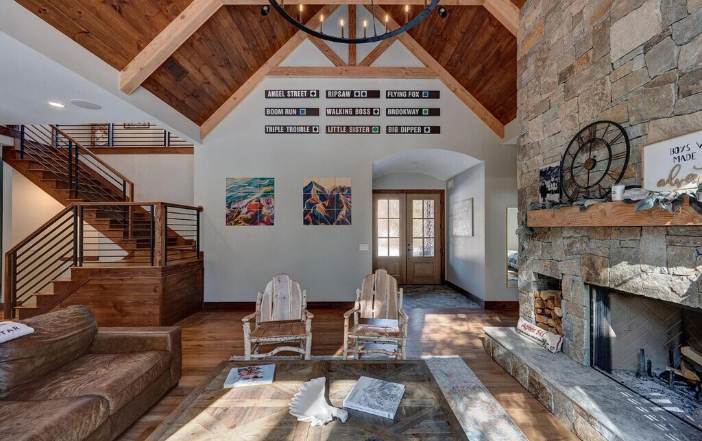 Retreat to this spacious 7-bedroom, 5-bathroom chalet and feel at home in the laid-back charm of the picturesque surroundings. This relaxing retreat, with its alluring indoors and luxury hot tub, allows you to immerse yourself in the beauty of New England. The cabin features rustic furnishings, wooden finishes, and tasteful decor. The modern open-concept living space includes two living rooms, a fully equipped chef's kitchen, and a large dining area. Enjoy the sunroom, deck, and yard to take in the beauty and serenity of the scenic natural surroundings while soaking in the luxurious hot tub or sitting around the magical fire pit. The first living room offers a snug leather sofa with a plush blanket, a smart TV, a grand stone fireplace with firewood provided, a comfy sofa, rocking chairs, and a large coffee table. The second cozy family space includes two cozy sofas with pillows, a smart TV and HQ soundbar, shuffleboard tables, and a wooden coffee table. The fully equipped kitchen boasts top-tier appliances, custom wood cabinetry, countertops with a central kitchen island, a microwave, stove, oven, toaster, coffee maker, hot water kettle, refrigerator/freezer, dishwasher, sink with hot and cold water, plates, glasses, silverware, and pots and pans. The dining area includes a dining table with seating for 10 and a huge kitchen island with seating for 10. The sunroom offers an oversized sectional, a smart TV, and a coffee table. Free parking is available at the property. The heated garage can accommodate 2 full-size SUVs, and the driveway can accommodate up to 5 full-size SUVs. Street parking is not allowed due to neighborhood restrictions. This luxurious ski property sits in the heart of the White Mountains in South Peak near Lincoln, NH, just at the base of Loon Mountain and a few steps away from the ski resort. Just minutes away, the charming town of Woodstock awaits. The location offers convenient access to Waterville Valley and Cannon Mountain. Nearby attractions include Loon Mountain Resort (4 min away), Seven Birches Winery (5 min away), Franconia Falls (6 min away), Alpine Adventures (6 min away), Granite State Scenic Railway (7 min away), Clark's Trading Post (8 min away), Whale's Tale Waterpark (10 min away), Flume Gorge (12 min away), Santa's Village (50 min away) and Story Land (54 min away). Smoking inside the home is prohibited, and any evidence of smoking will result in a $2,000 fee for odor removal and furniture cleaning. Parties and events are not allowed. A trusted partner will provide you with a digital guidebook that will be filled with not only information about the property but also local recommendations and promotions!. Registration Number: STR25-00185 [SI]